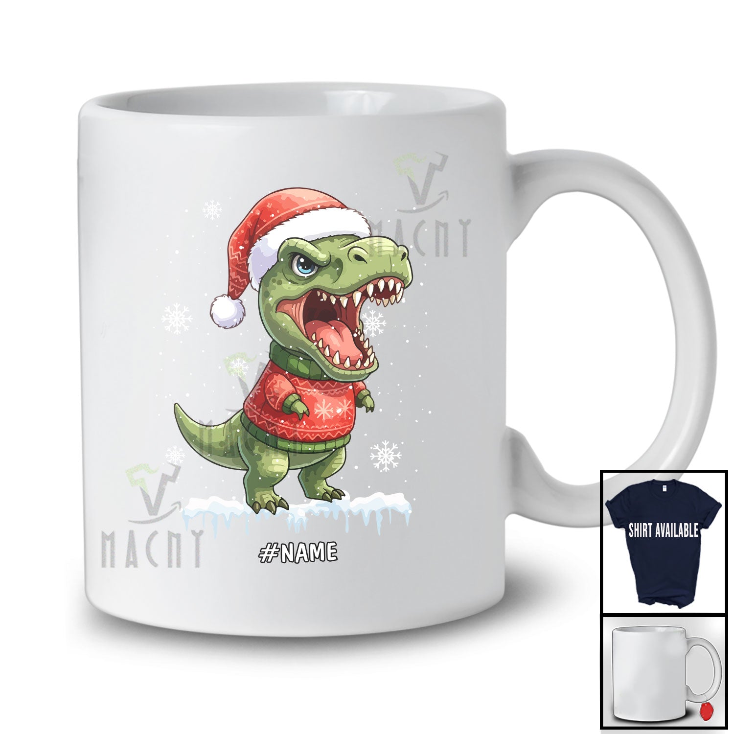 Personalized Custom Name Santa T-Rex Sweater Snow; Amazing Christmas T-Rex Dinosaur T-Shirt. This cotton t-shirt is a durable staple product with a classic fit. One of the most popular items, it has a relaxed style made for everyday and casual wear.