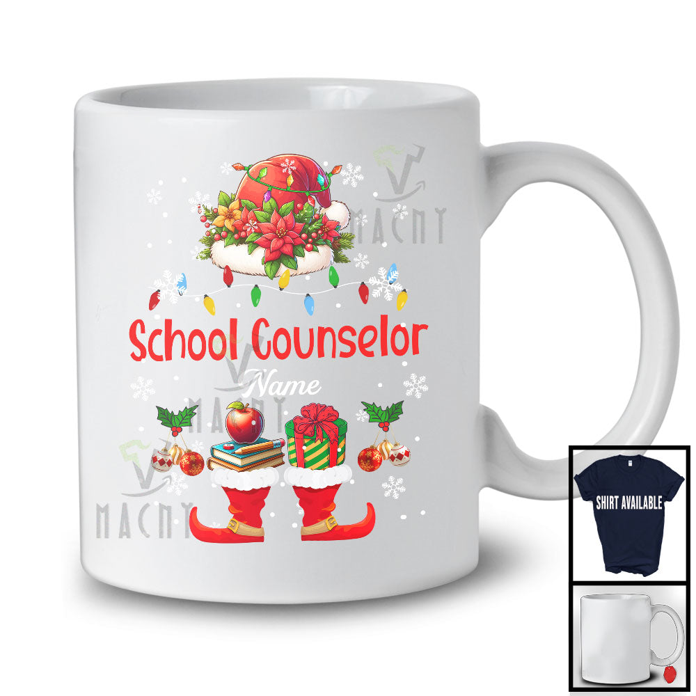 Personalized Custom Name School Counselor, Joyful Christmas Lights Santa Book, Jobs Careers T-Shirt