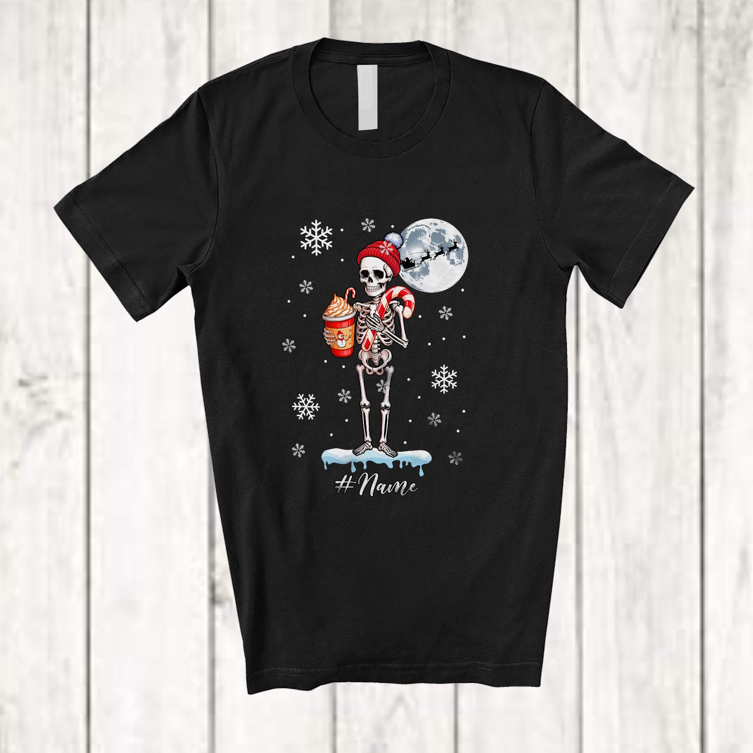 new MacnyStore - Personalized Custom Name Skeleton Holding Candy Cane; Humorous Christmas Moon; Snow Family T-Shirt – Macnystore