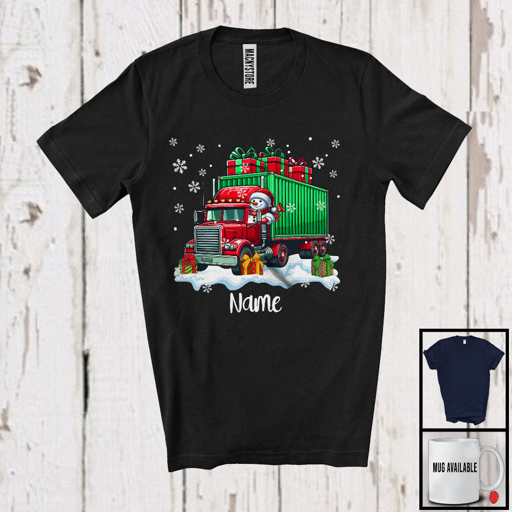 Personalized Custom Name Snowman Driving Truck, Adorable Christmas Rider, X-mas Team T-Shirt