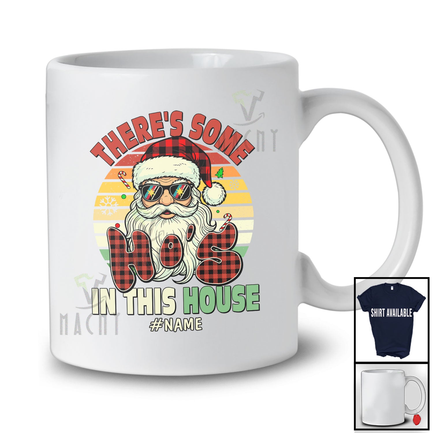 Personalized Custom Name Some Ho's In This House; Joyful Christmas Adult Plaid Retro Beard Santa T-Shirt. This cotton t-shirt is a durable staple product with a classic fit. One of the most popular items, it has a relaxed style made for everyday and casual wear.