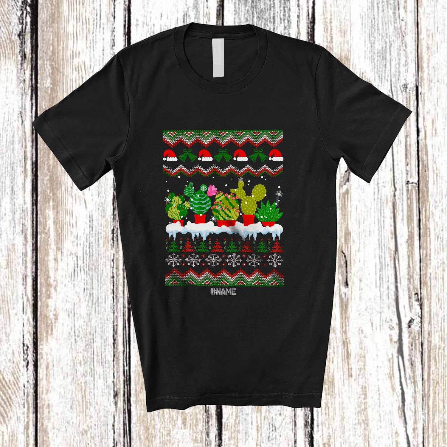 Personalized Custom Name Succulent With Christmas Santa; Lovely X-mas Sweater Family Group T-Shirt. This cotton t-shirt is a durable staple product with a classic fit. One of the most popular items, it has a relaxed style made for everyday and casual wear.