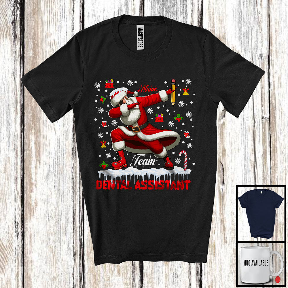 Personalized Custom Name Team Dental Assistant, Awesome Christmas Santa Snowing, Careers Group T-Shirt