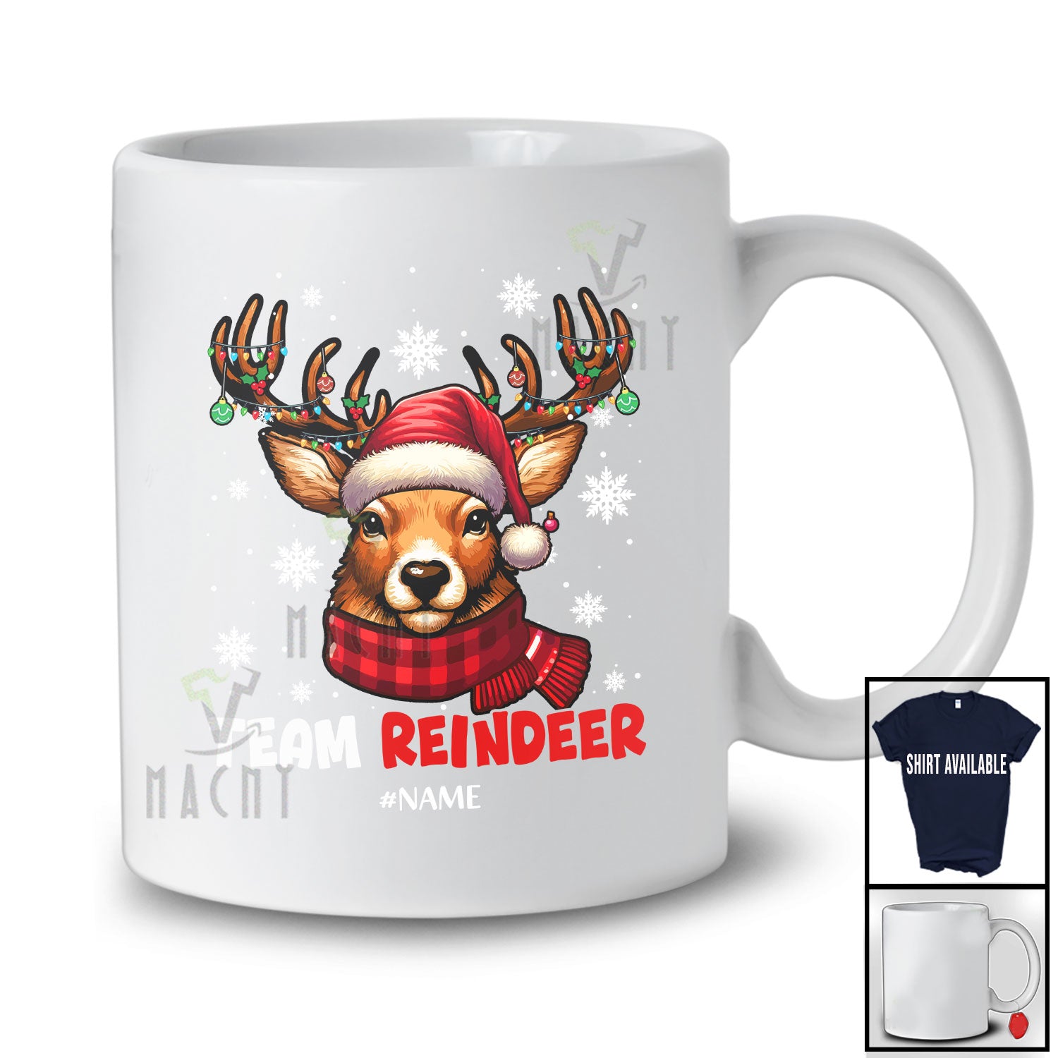 Personalized Custom Name Team Reindeer; Amusing Christmas Reindeer Face Snow; Family T-Shirt. This cotton t-shirt is a durable staple product with a classic fit. One of the most popular items, it has a relaxed style made for everyday and casual wear.
