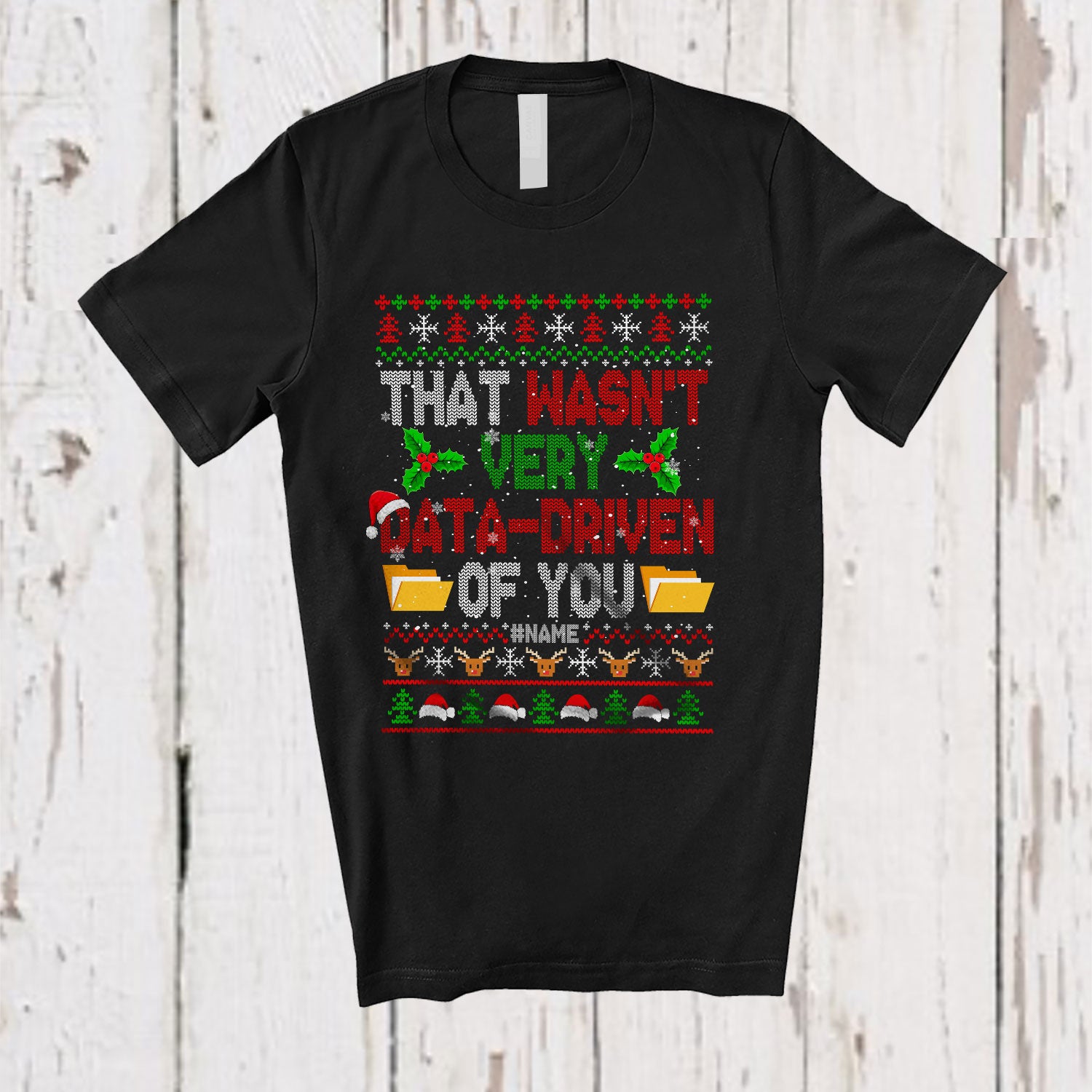 Personalized Custom Name That Wasn't Very Data-Driven; Joyful Christmas Sweater Data Computer T-Shirt. This cotton t-shirt is a durable staple product with a classic fit. One of the most popular items, it has a relaxed style made for everyday and casual wear.