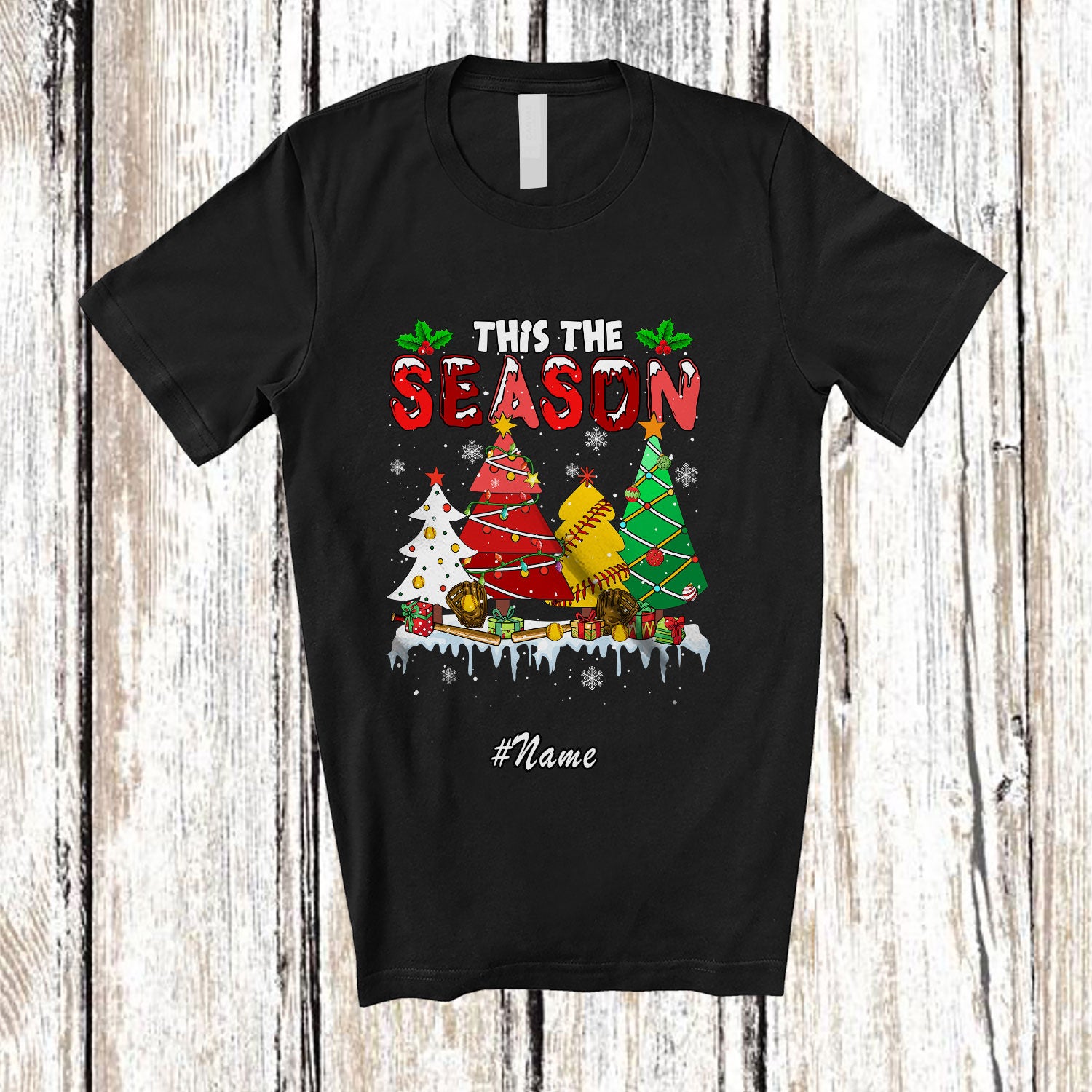 Personalized Custom Name This The Season; Joyful Christmas Tree Softball Player Team T-Shirt