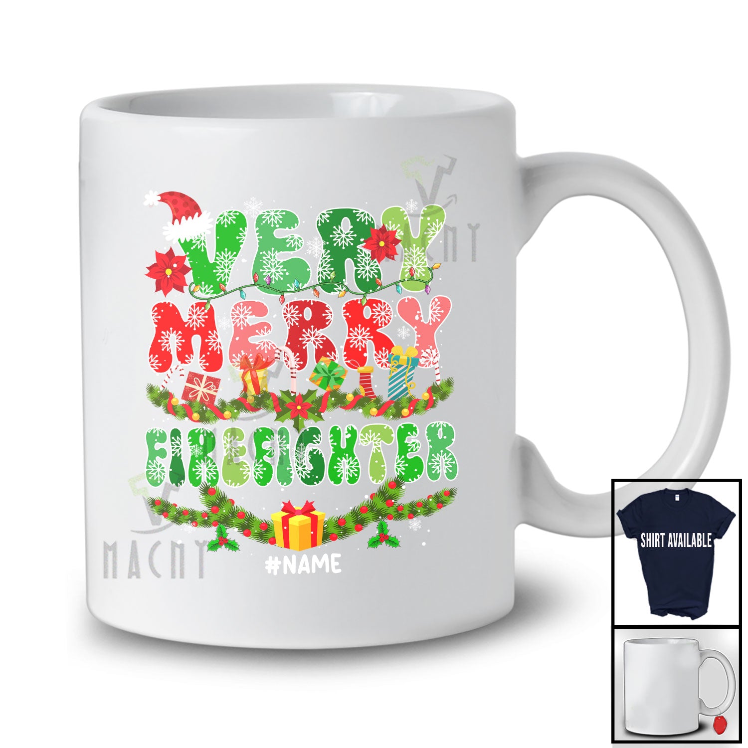 • Personalized Custom Name Very Merry Firefighter; Wonderful Christmas Lights Tinsel; Proud Jobs T-Shirt. This cotton t-shirt is a durable staple product with a classic fit. One of the most popular items, it has a relaxed style made for everyday and casual wear.