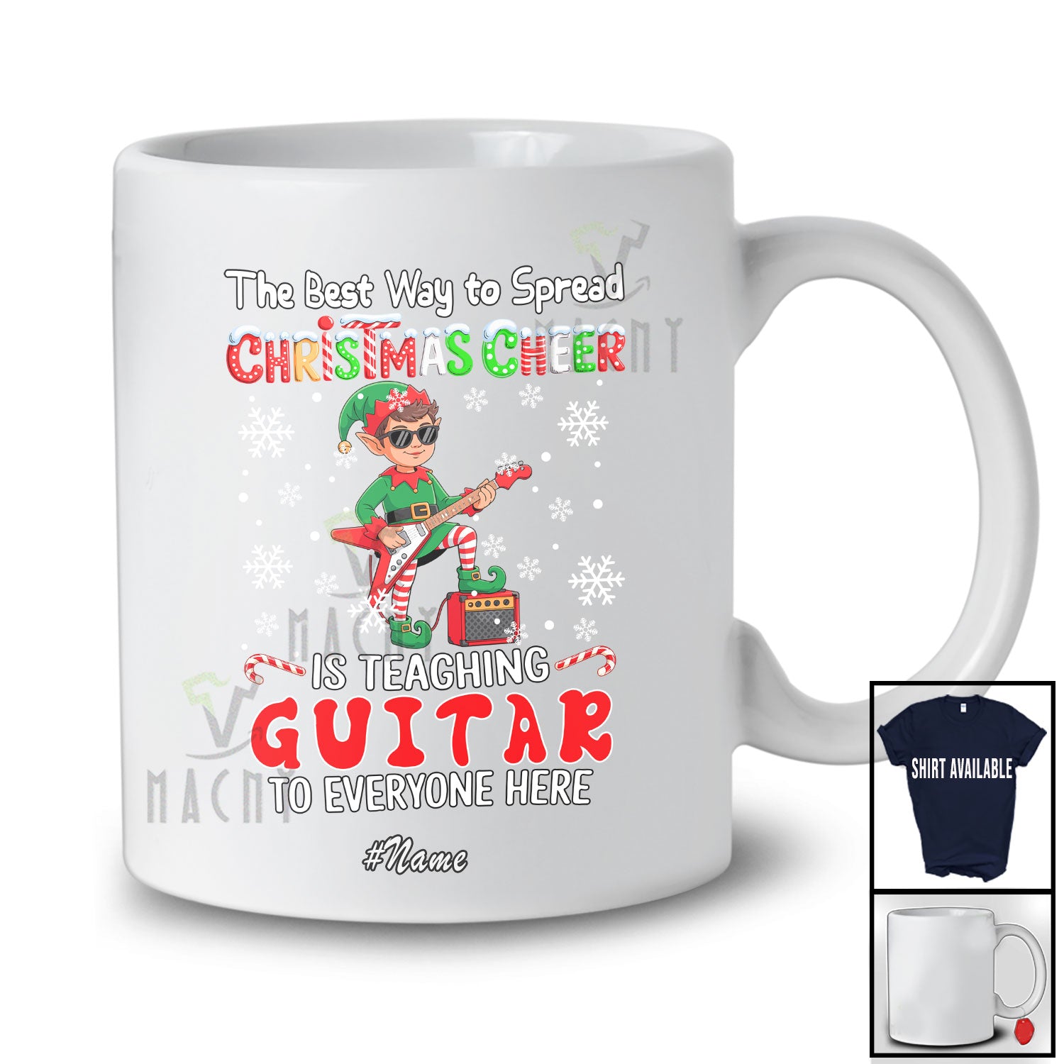 Every product is unique, just like you. If you're looking for a product that fits the mold of your life, the Personalized Custom Name Way Spread Christmas Cheer Teaching Guitar; Proud Teacher Elf T-Shirt is for you.