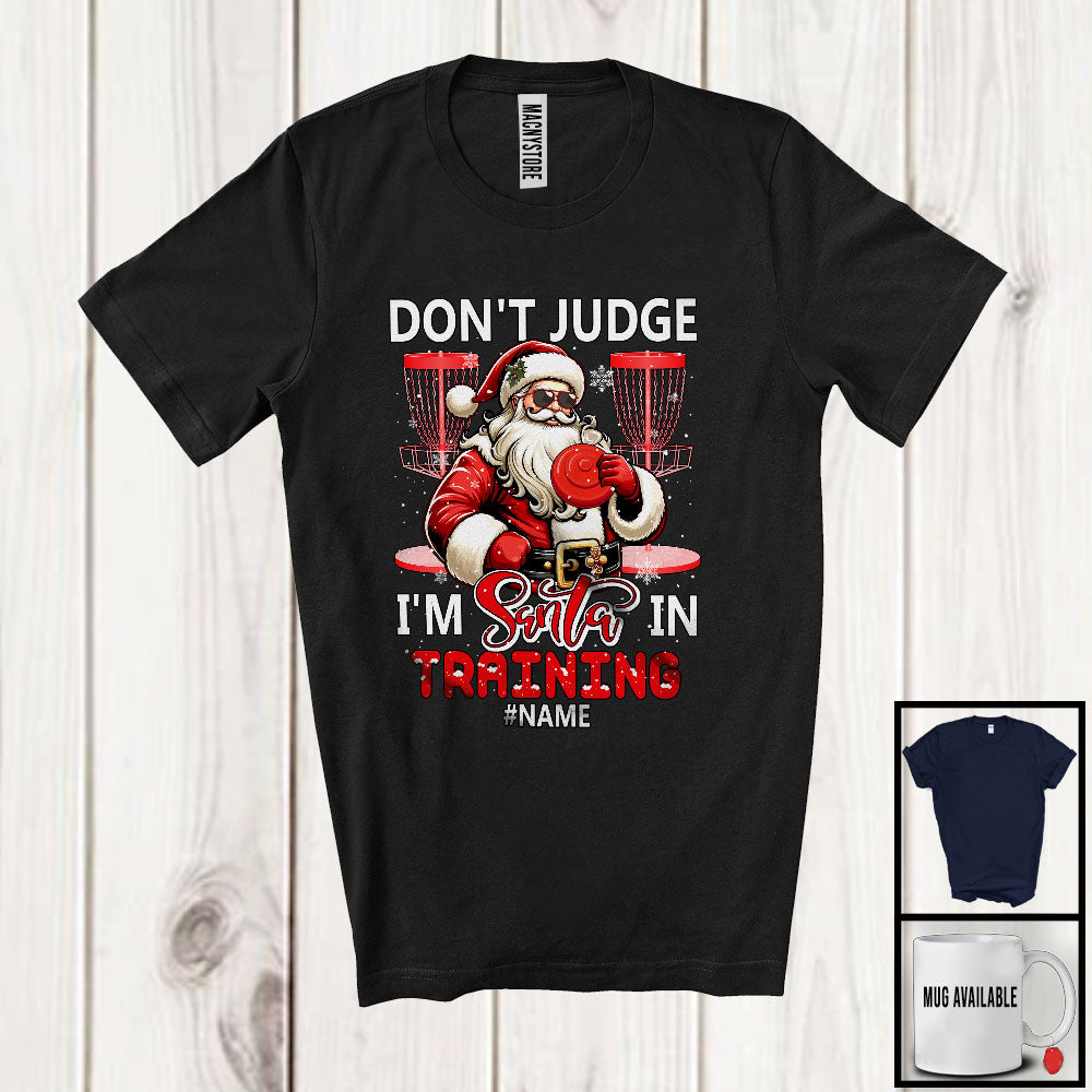 Personalized Don't Judge Santa In Training; Humorous Christmas Custom Name Disc Golf Santa T-Shirt