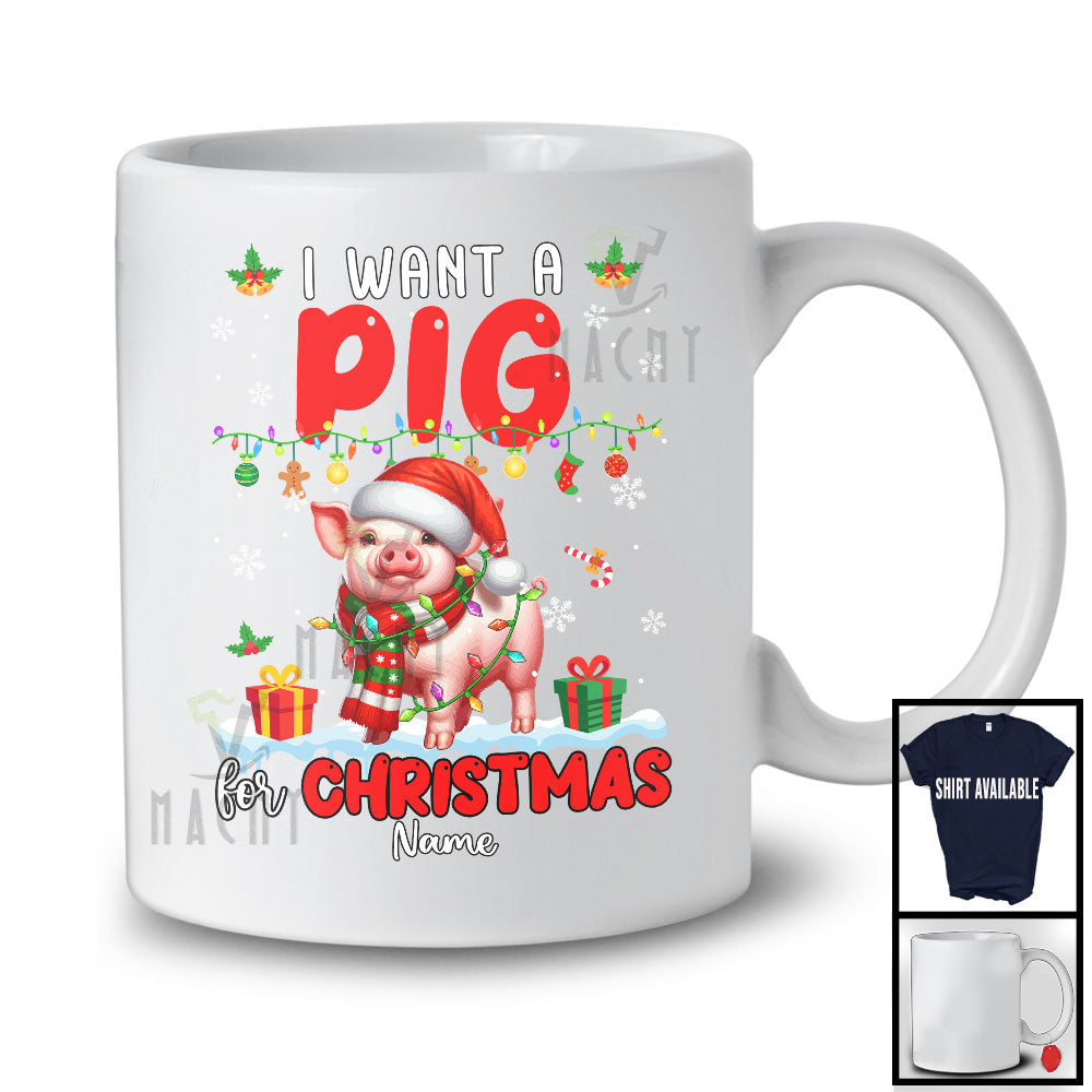 Personalized I Want A Pig For Christmas; Lovely Santa Pig Custom Name Farmer; Family Group T-Shirt. This cotton t-shirt is a durable staple product with a classic fit. One of the most popular items, it has a relaxed style made for everyday and casual wear.