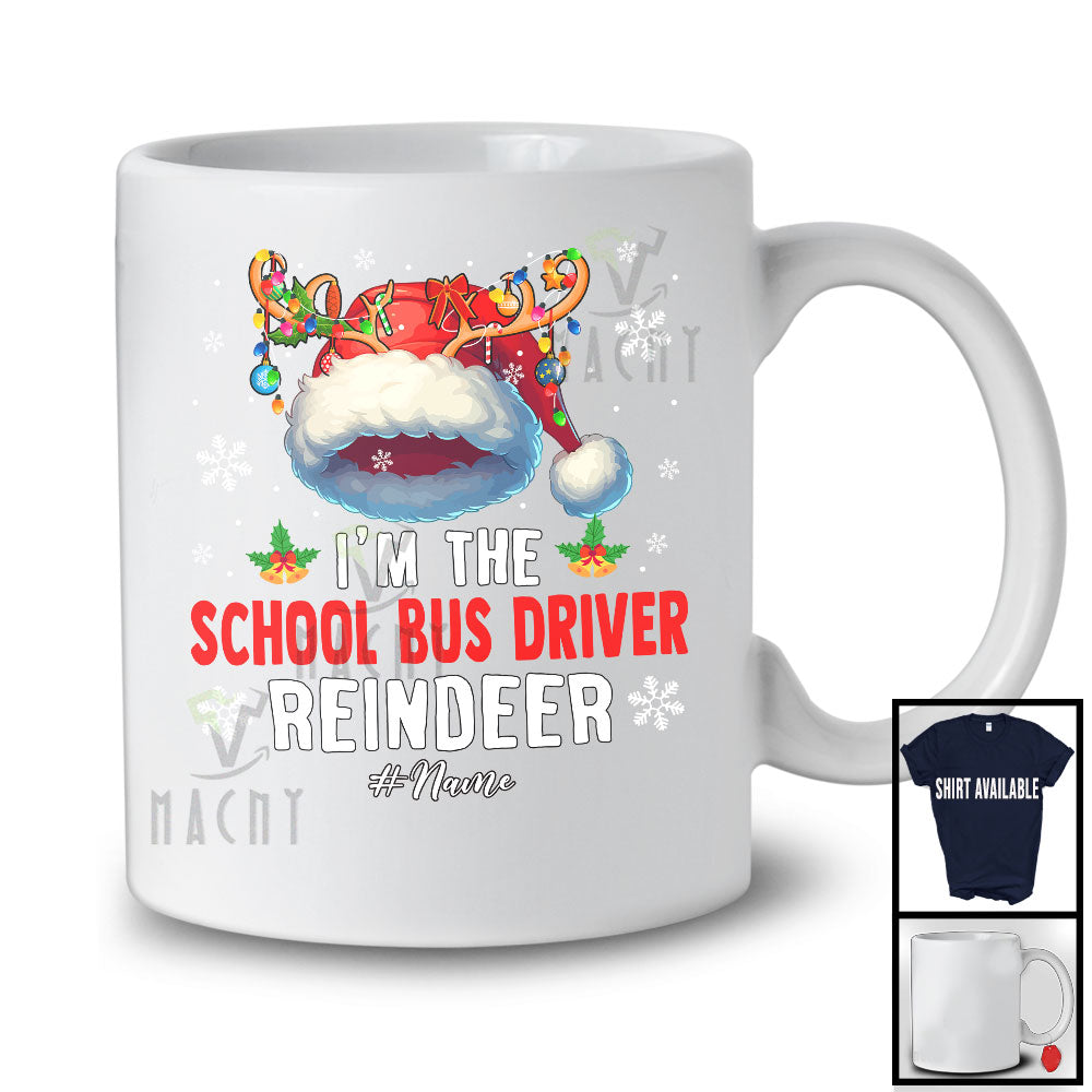 Personalized I'm The School Bus Driver Reindeer; Proud Christmas Santa; Custom Name Jobs T-Shirt