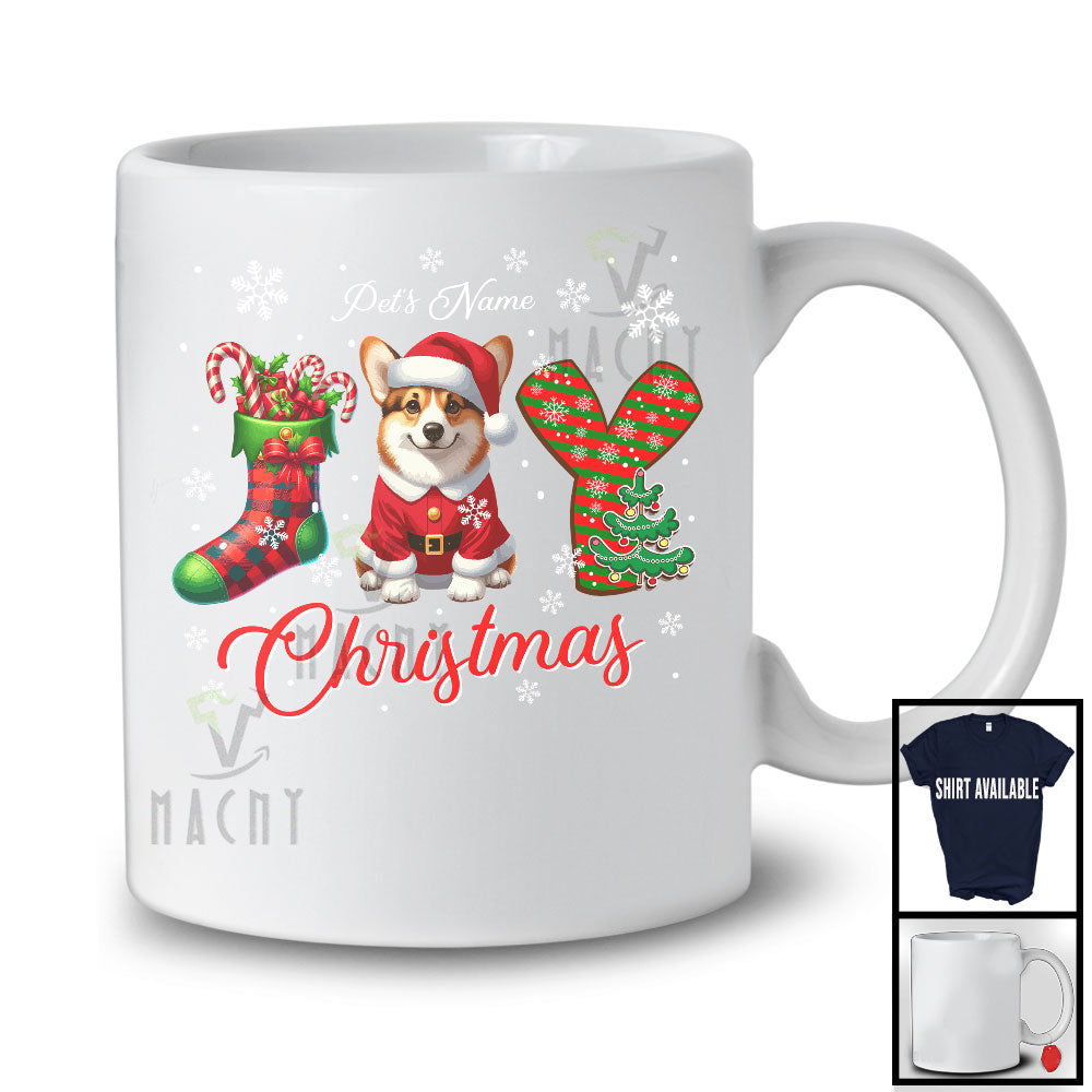 Personalized Joy Christmas, Lovely Custom Name Santa Corgi, X-mas Sock Tree Snowing T-Shirt
