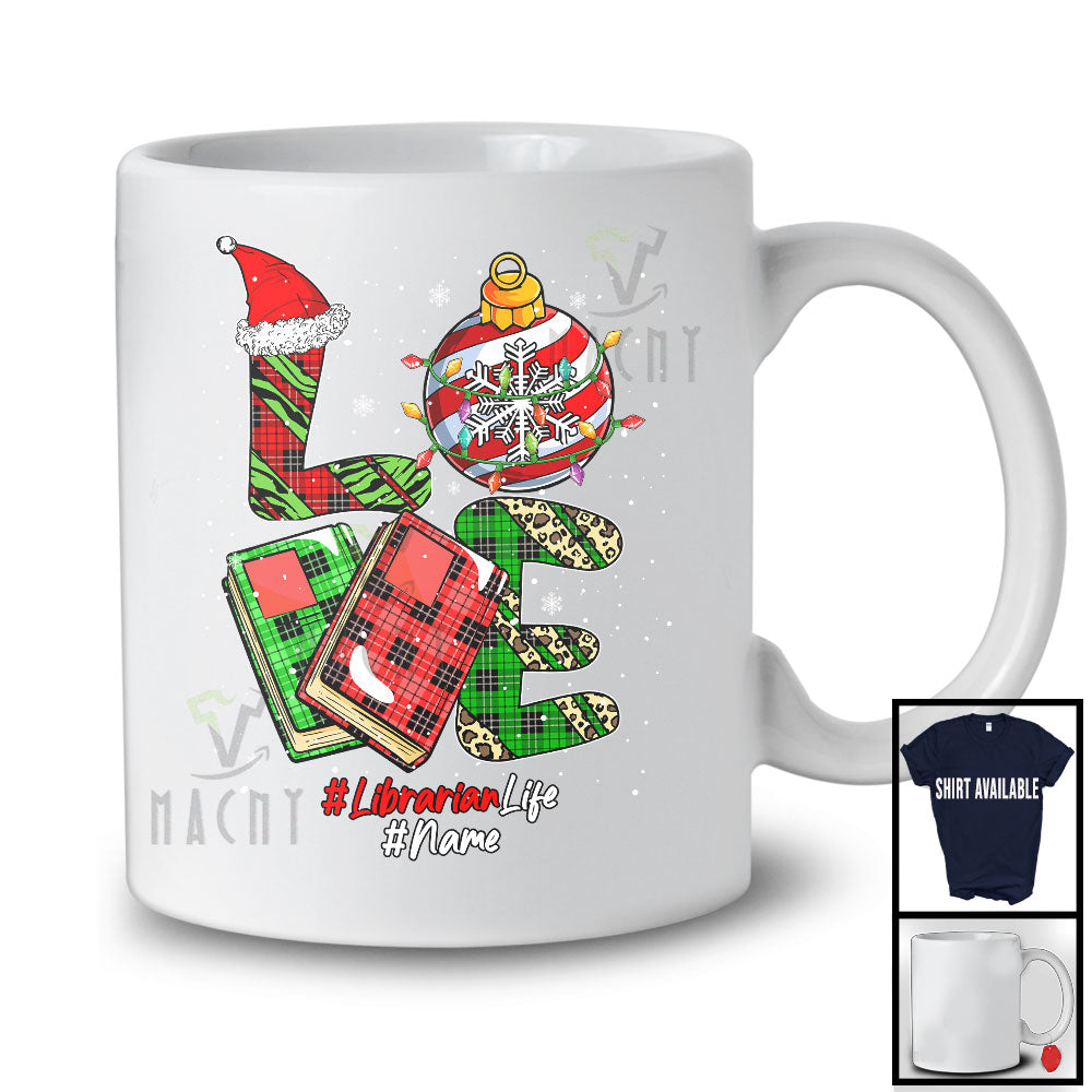 Personalized LOVE Librarian; Wonderful Christmas Plaid Leopard Ornaments; Jobs Careers T-Shirt