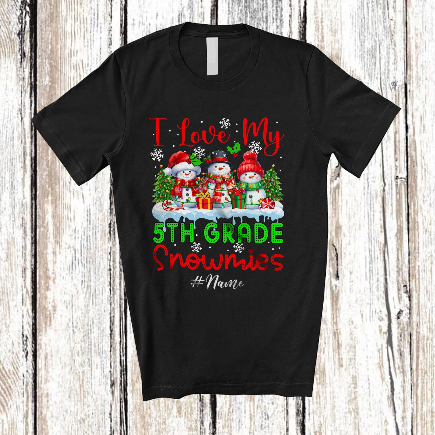 Personalized Love My 5th Grade Snowmies; Lovely Christmas Custom Name Teacher Three Snowman T-Shirt