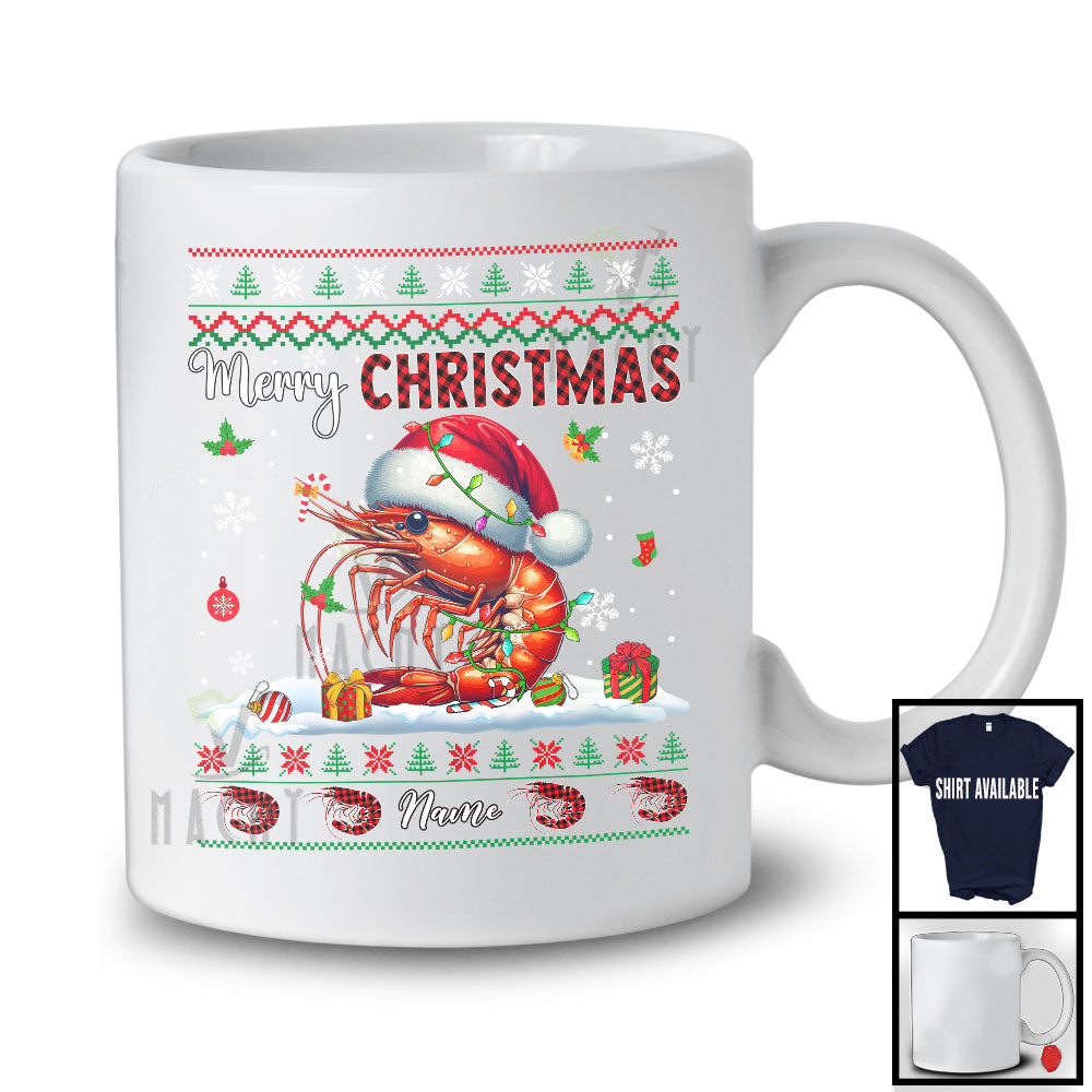new MacnyStore - Personalized Merry Christmas; Amazing X-mas Red Plaid Santa Shrimp; Custom Name Sea Animal T-Shirt – Macnystore