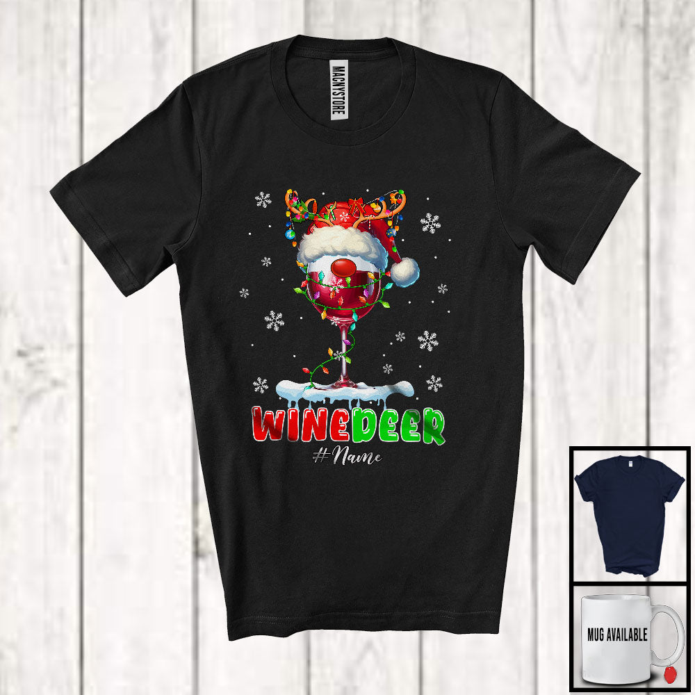 • Personalized Winedeer; Fantastic Christmas Reindeer Wine Glass; Custom Name Drinking Couple T-Shirt. This cotton t-shirt is a durable staple product with a classic fit. One of the most popular items, it has a relaxed style made for everyday and casual wear.