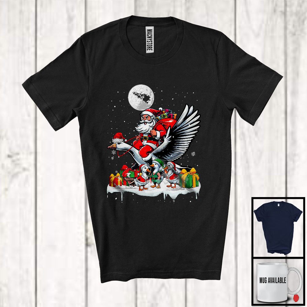 Santa Riding Goose With Baby Gooses; Awesome Christmas Farm Animals Farmer; Snowing T-Shirt