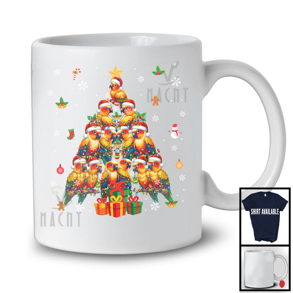 new MacnyStore - Sun Conure Christmas Tree; Adorable X-mas Lights Santa Sun Conure Bird; Snowing Family Group T-Shirt – Macnystore