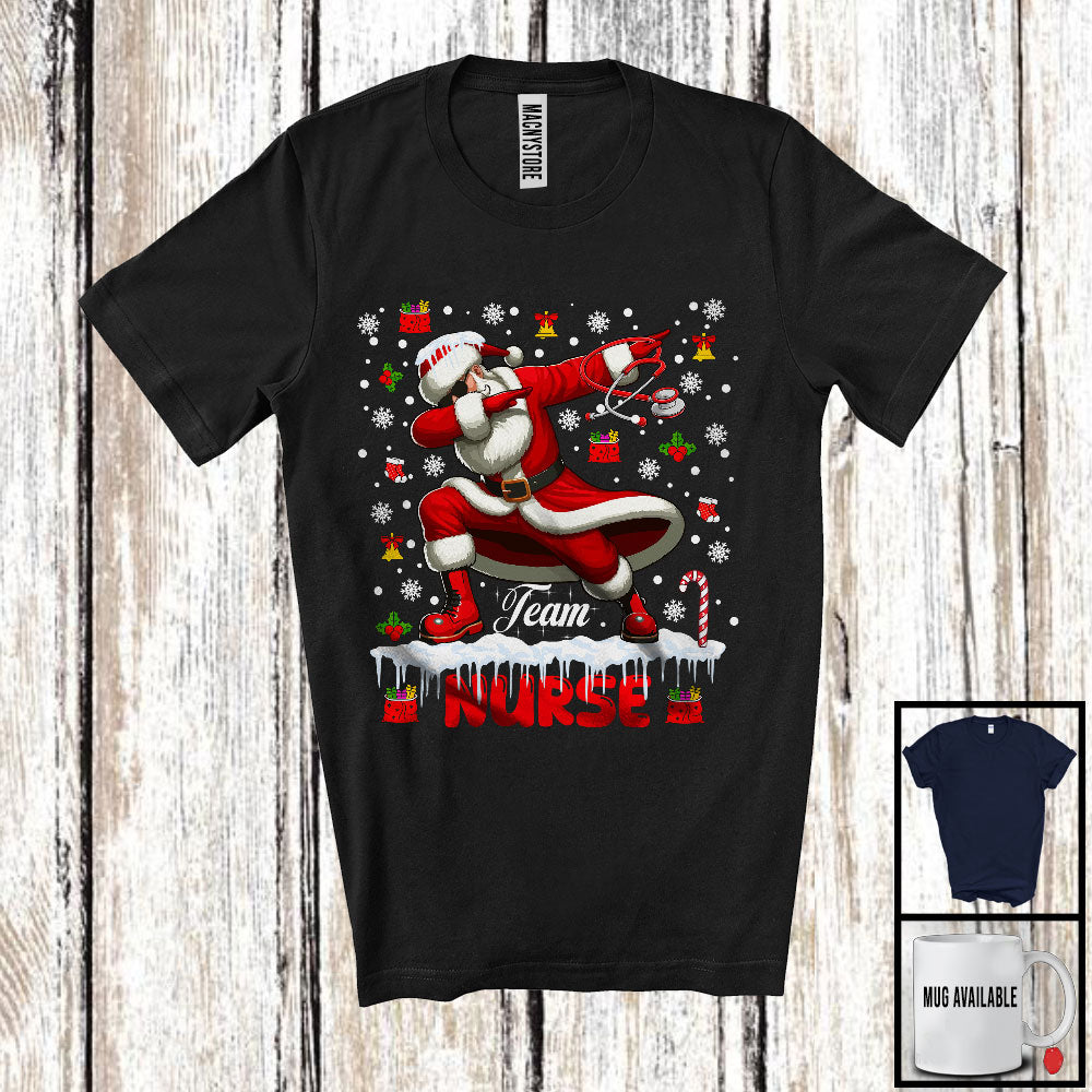 Team Nurse, Merry Christmas Santa Snowing, X-mas Matching Proud Careers Group T-Shirt