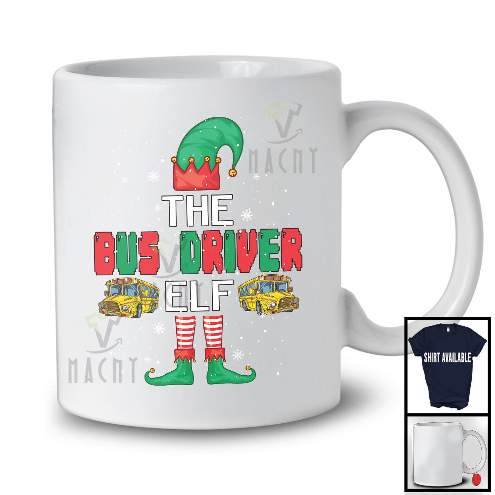 The Bus Driver Elf; Amazing Christmas Elf Costume Pajama; Snow X-mas Family Group T-Shirt. This cotton t-shirt is a durable staple product with a classic fit. One of the most popular items, it has a relaxed style made for everyday and casual wear.