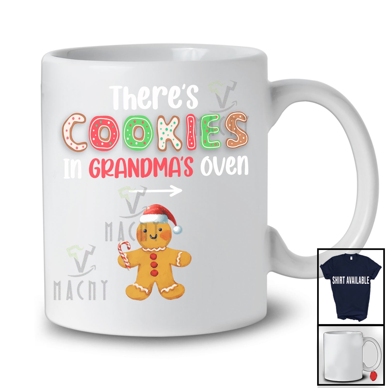 • There's Cookie In Grandma's Oven; Amusing Christmas Pregnancy Santa Gingerbread; Baking Family T-Shirt. This cotton t-shirt is a durable staple product with a classic fit. One of the most popular items, it has a relaxed style made for everyday and casual wear.