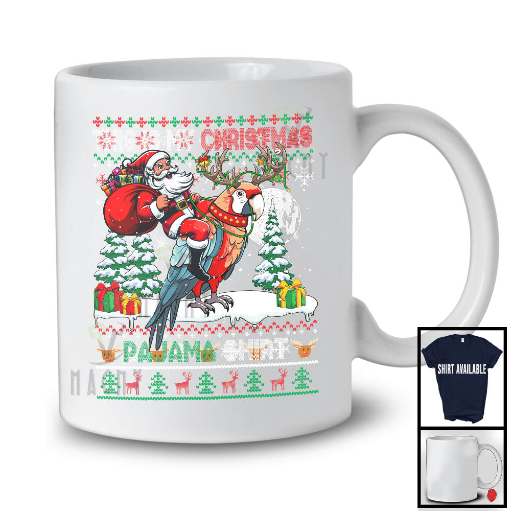 This Is My Christmas Pajama Shirt; Joyful Santa Riding Parrot; X-mas Tree Sweater Animal T-Shirt