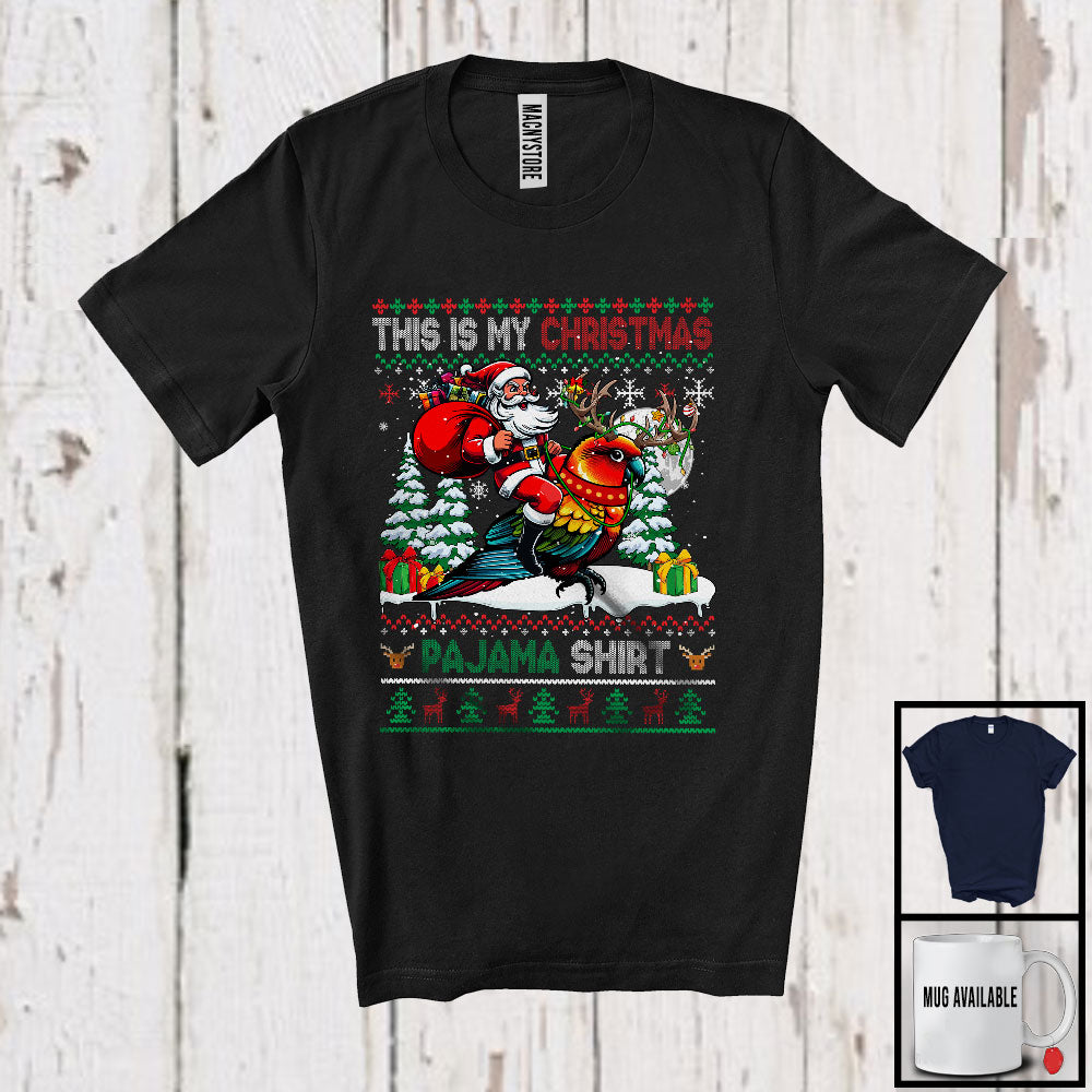 This Is My Christmas Pajama Shirt; Joyful Santa Riding Sun Conure Bird; X-mas Tree Sweater Animal T-Shirt