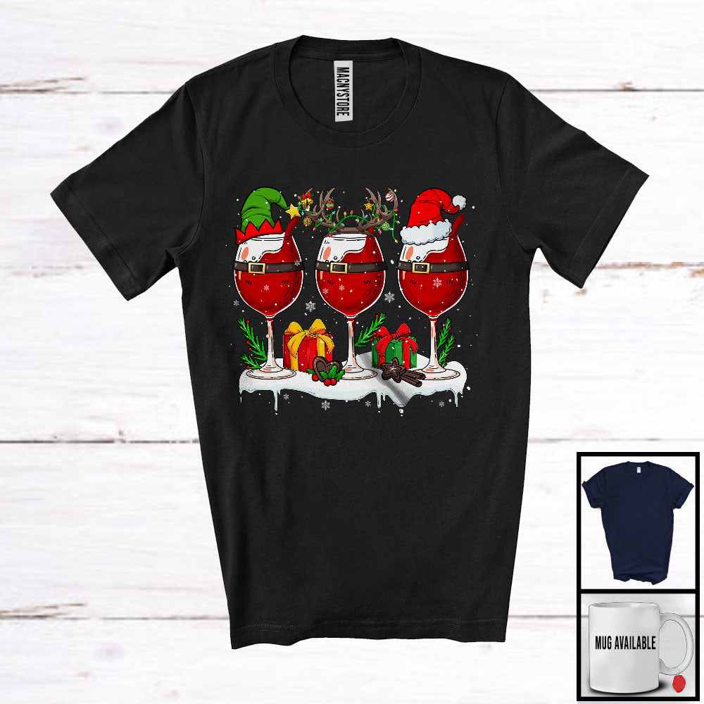 Three Santa Elf Reindeer Wine Glasses; Cheerful Christmas Drinking; X-mas Drunker Group T-Shirt