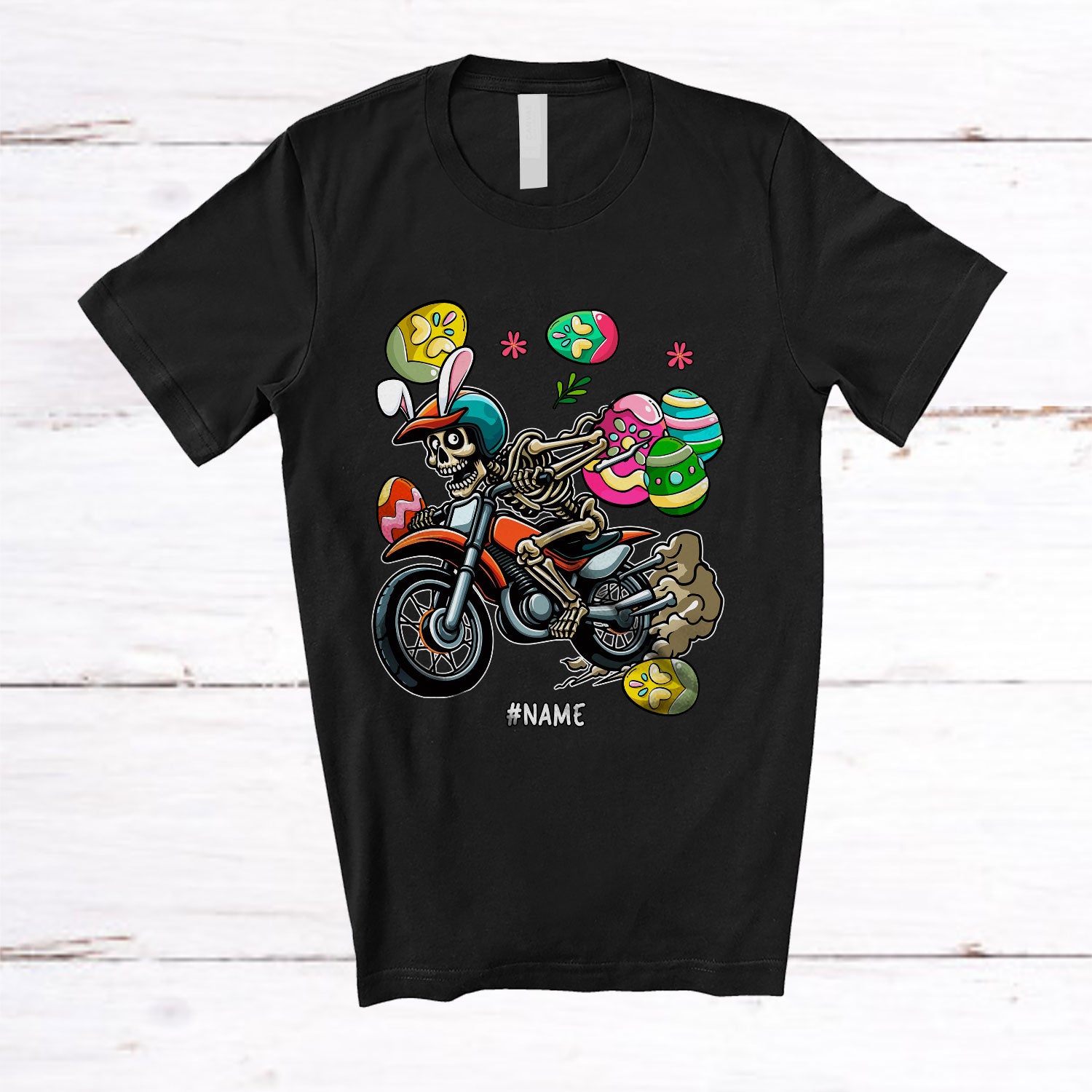 Personalized Bunny Skeleton Riding Dirt Biker; Awesome Easter Eggs Hunting; Custom Name Family T-Shirt