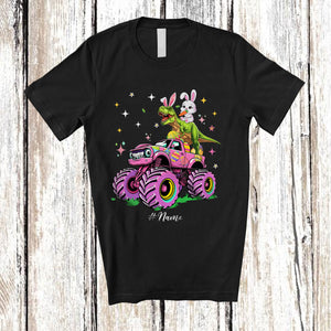 Personalized Bunny T-Rex On Monster Truck Dino; Adorable Easter Custom Name Dinosaur; Egg Hunt T-Shirt