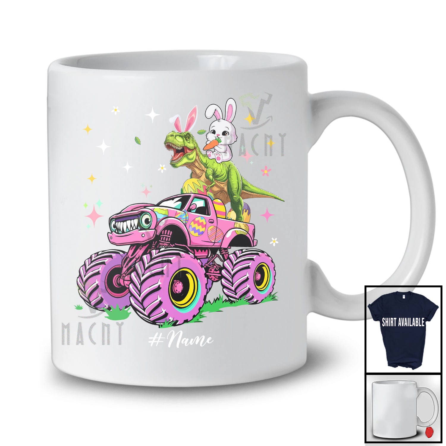 new MacnyStore - Personalized Bunny T-Rex On Monster Truck Dino; Adorable Easter Custom Name Dinosaur; Egg Hunt T-Shirt – Macnystore