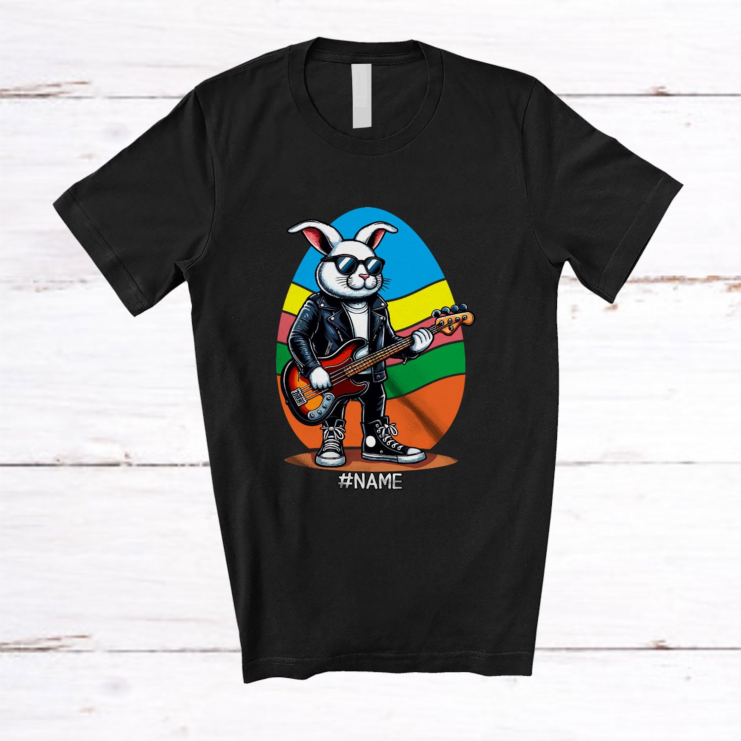 Personalized Custom Name Bunny Sunglasses Rock Bass Guitar; Amazing Easter Egg Vintage Retro T-Shirt