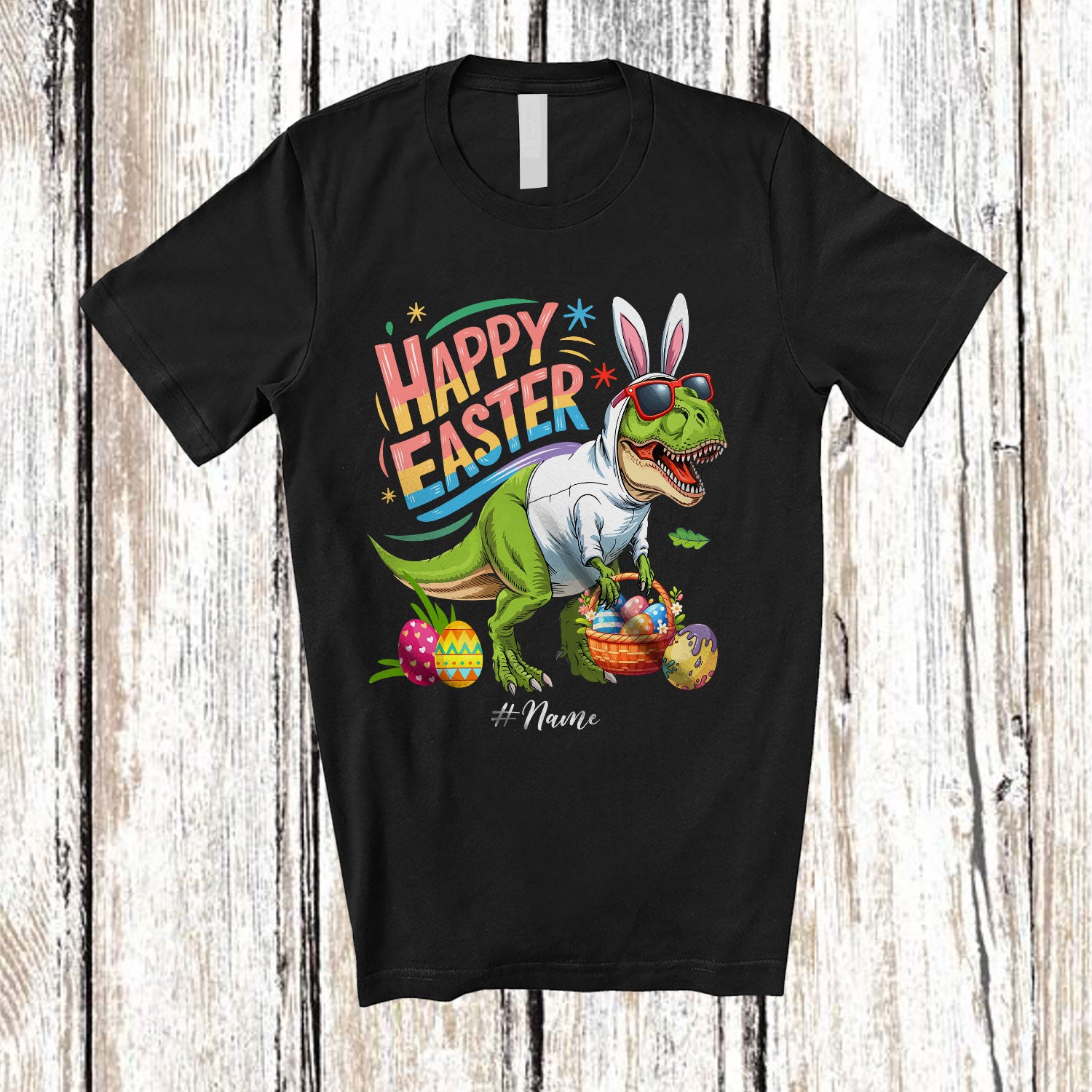 • Personalized Custom Name Happy Easter; Amazing Easter Bunny T-Rex; Egg Hunt Family T-Shirt. This cotton t-shirt is a durable staple product with a classic fit. One of the most popular items, it has a relaxed style made for everyday and casual wear.