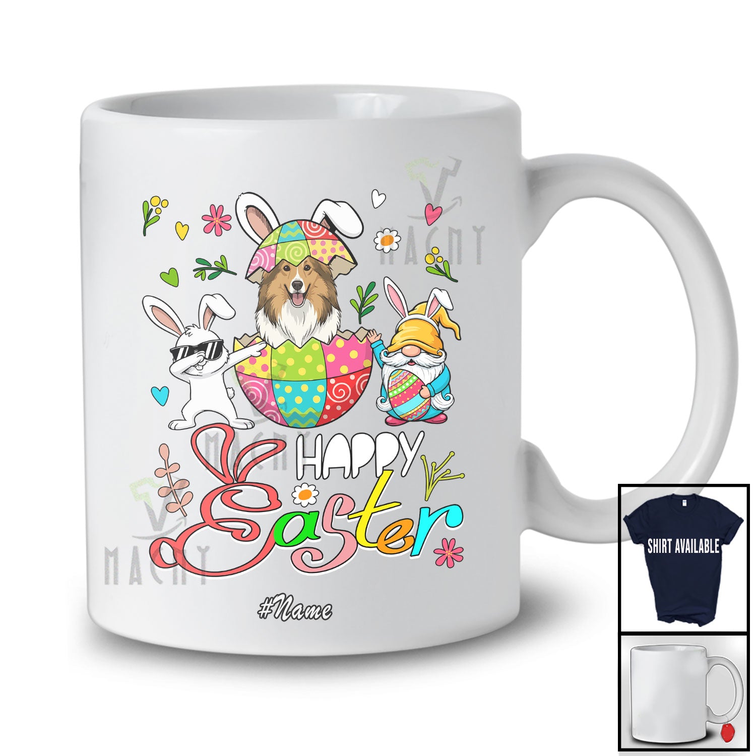 new MacnyStore - Personalized Custom Name Happy Easter; Joyful Dabbing Bunny Shetland Sheepdog; Easter Eggs Gnome T-Shirt – Macnystore
