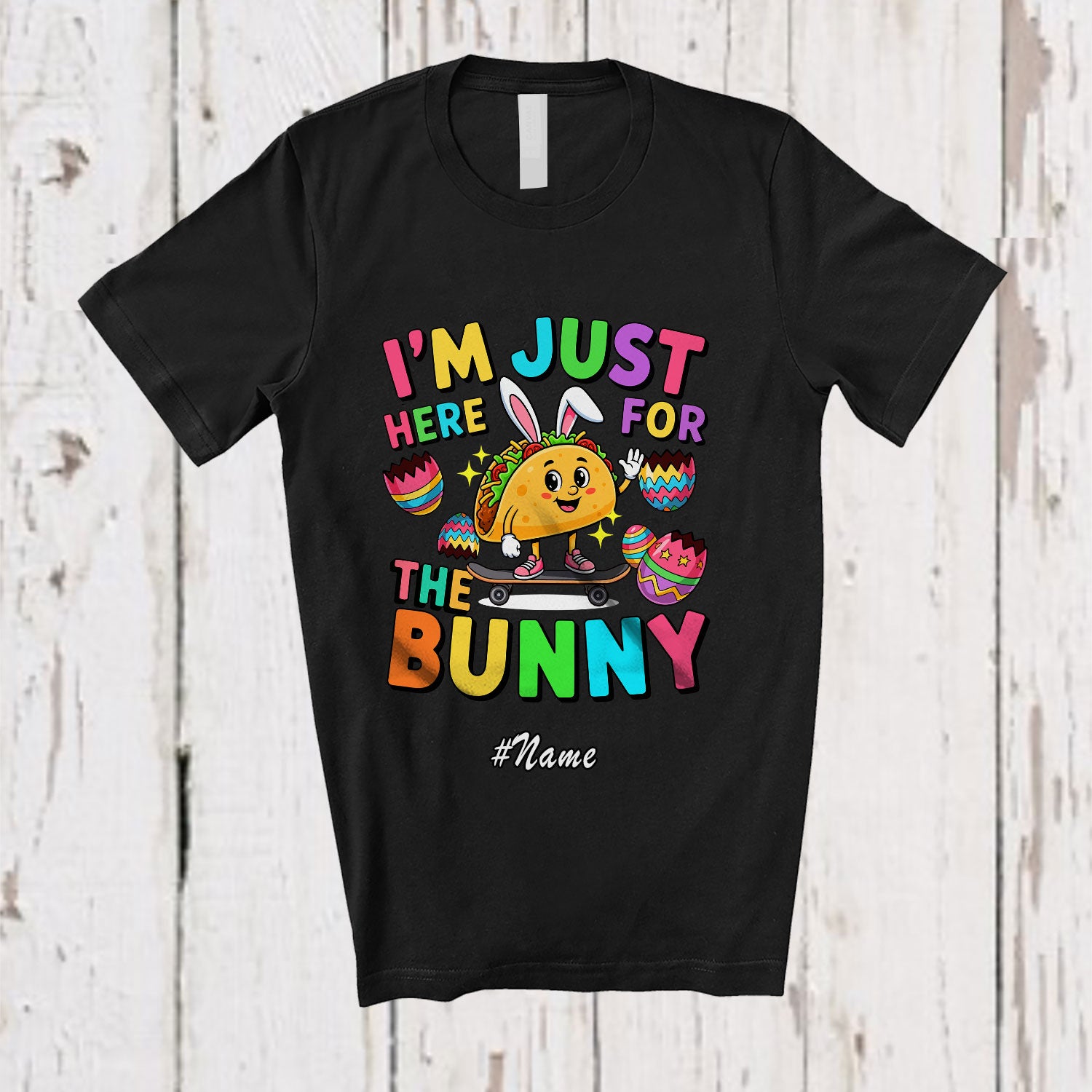 This Personalized Custom Name I'm Just Here For The Bunny; Awesome Easter Eggs Bunny Taco Food T-Shirt is great idea gift for your family, friends in this birthday, christmas, mother's day, father's day, patrick's day or any holiday.