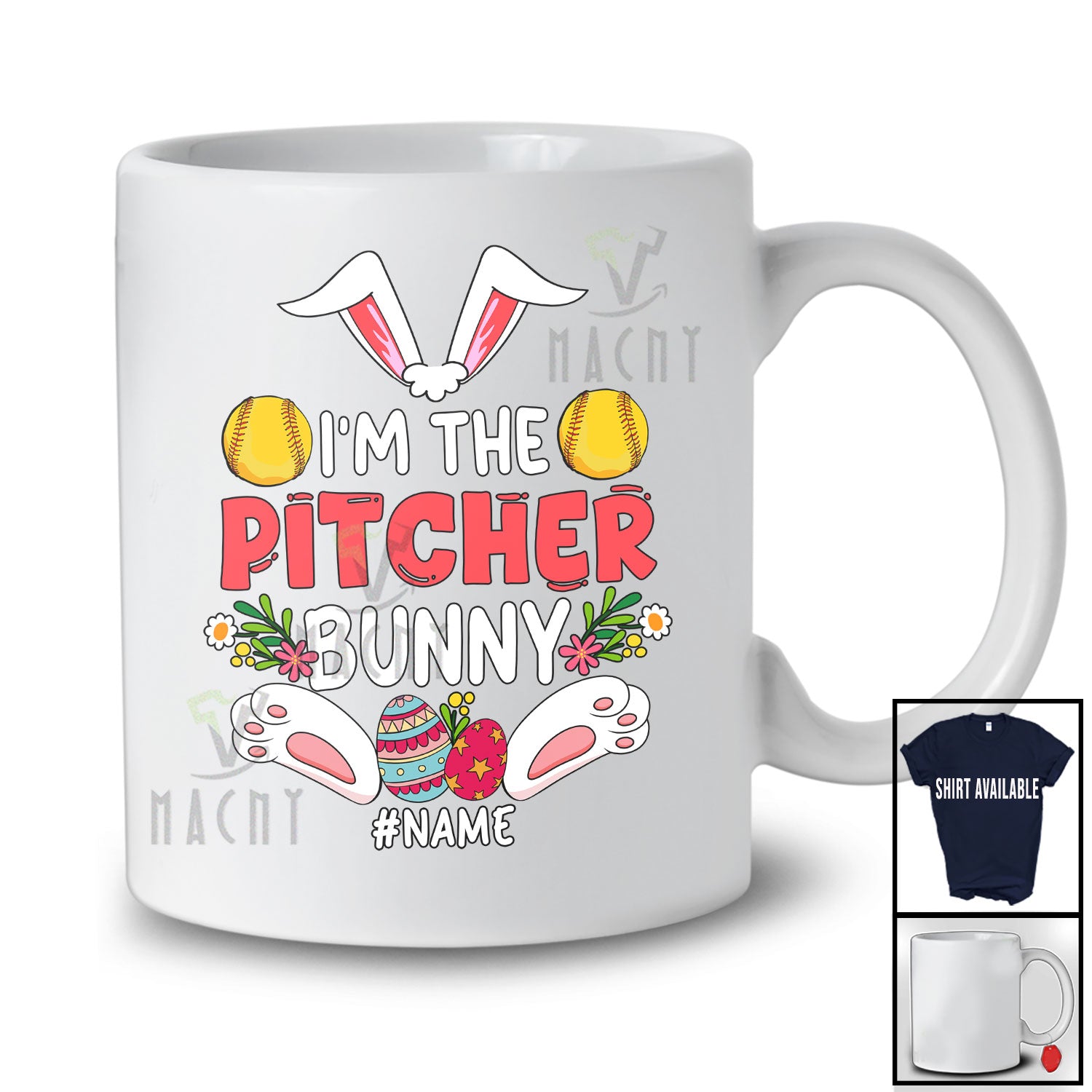 • Personalized Custom Name I'm The Pitcher Bunny; Lovely Easter Eggs Hunting; Softball Player T-Shirt. This cotton t-shirt is a durable staple product with a classic fit. One of the most popular items, it has a relaxed style made for everyday and casual wear.