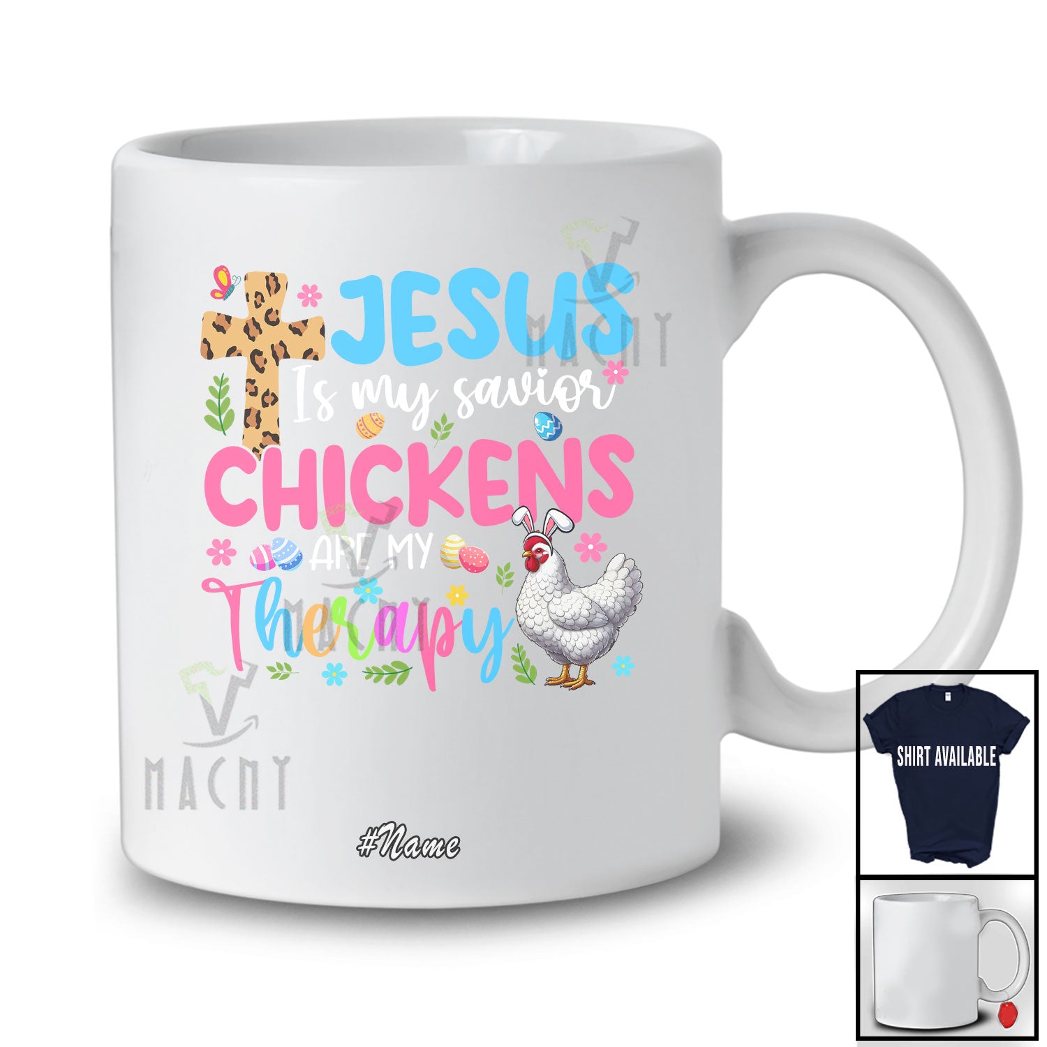 Personalized Custom Name Jesus Is My Savior Chickens Therapy; Amazing Easter Leopard Cross T-Shirt. This cotton t-shirt is a durable staple product with a classic fit. One of the most popular items, it has a relaxed style made for everyday and casual wear.