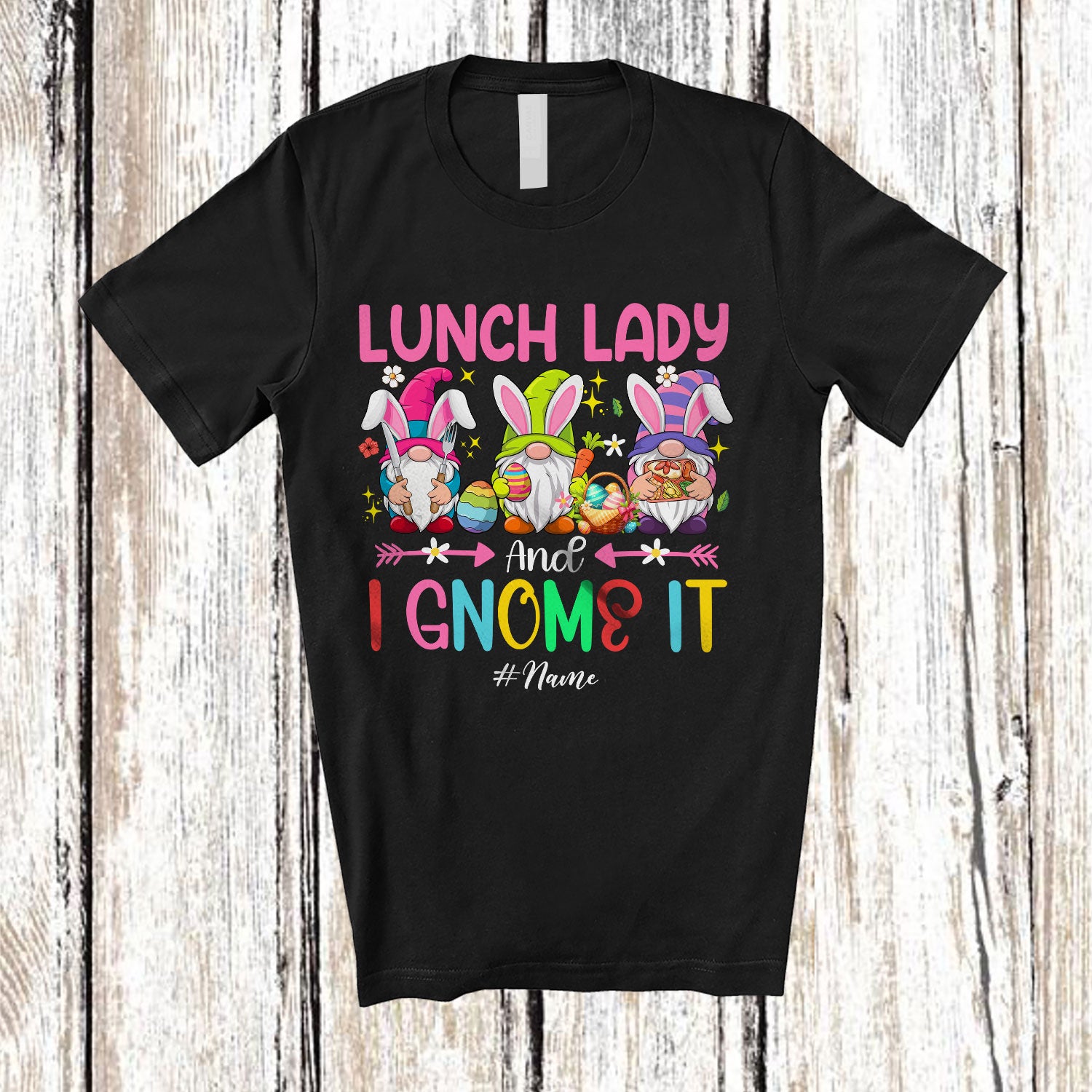 Personalized Custom Name Lunch Lady And I Gnomes It; Awesome Easter Egg Three Gnomes; Jobs T-Shirt. This cotton t-shirt is a durable staple product with a classic fit. One of the most popular items, it has a relaxed style made for everyday and casual wear.