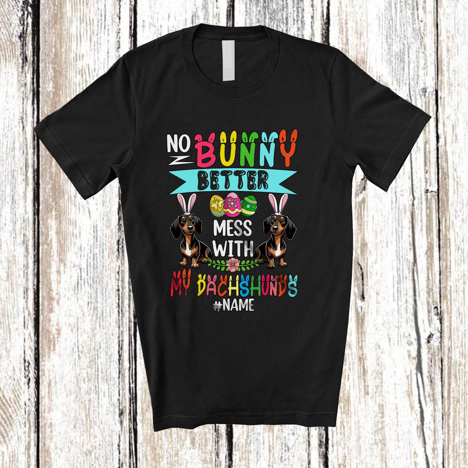 • The Personalized Custom Name No Bunny Better Mess With My Dachshunds; Lovely Easter Eggs Hunt T-Shirt is the yin, to your yang. You've found what you're looking for.