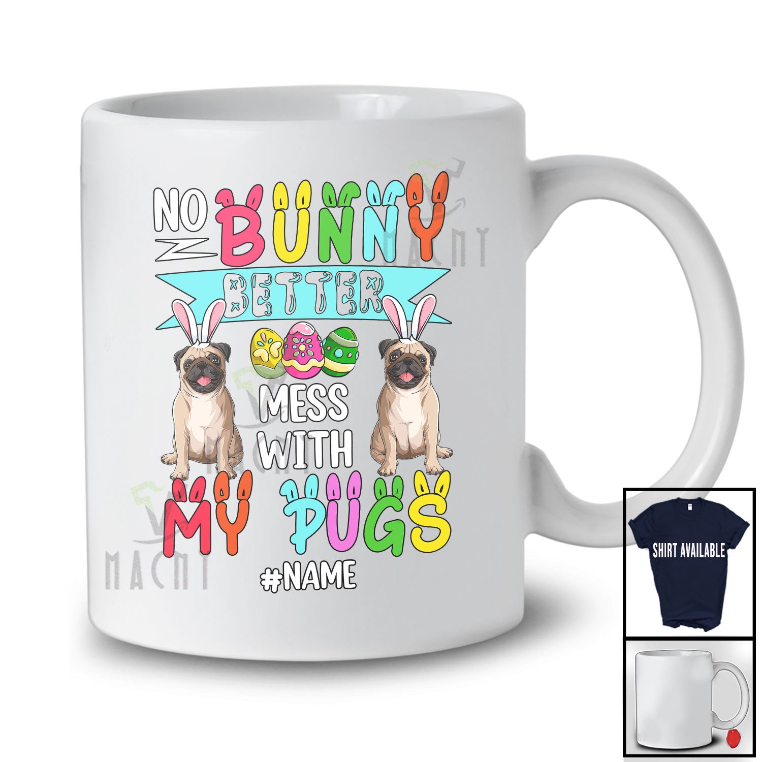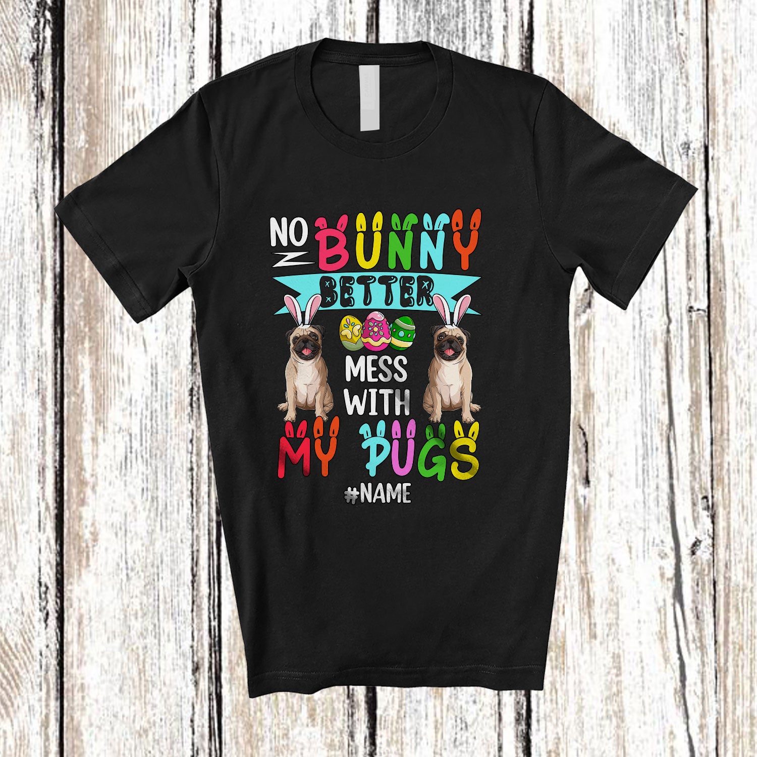 • Personalized Custom Name No Bunny Better Mess With My Pugs; Lovely Easter Eggs Hunt T-Shirt. This cotton t-shirt is a durable staple product with a classic fit. One of the most popular items, it has a relaxed style made for everyday and casual wear.