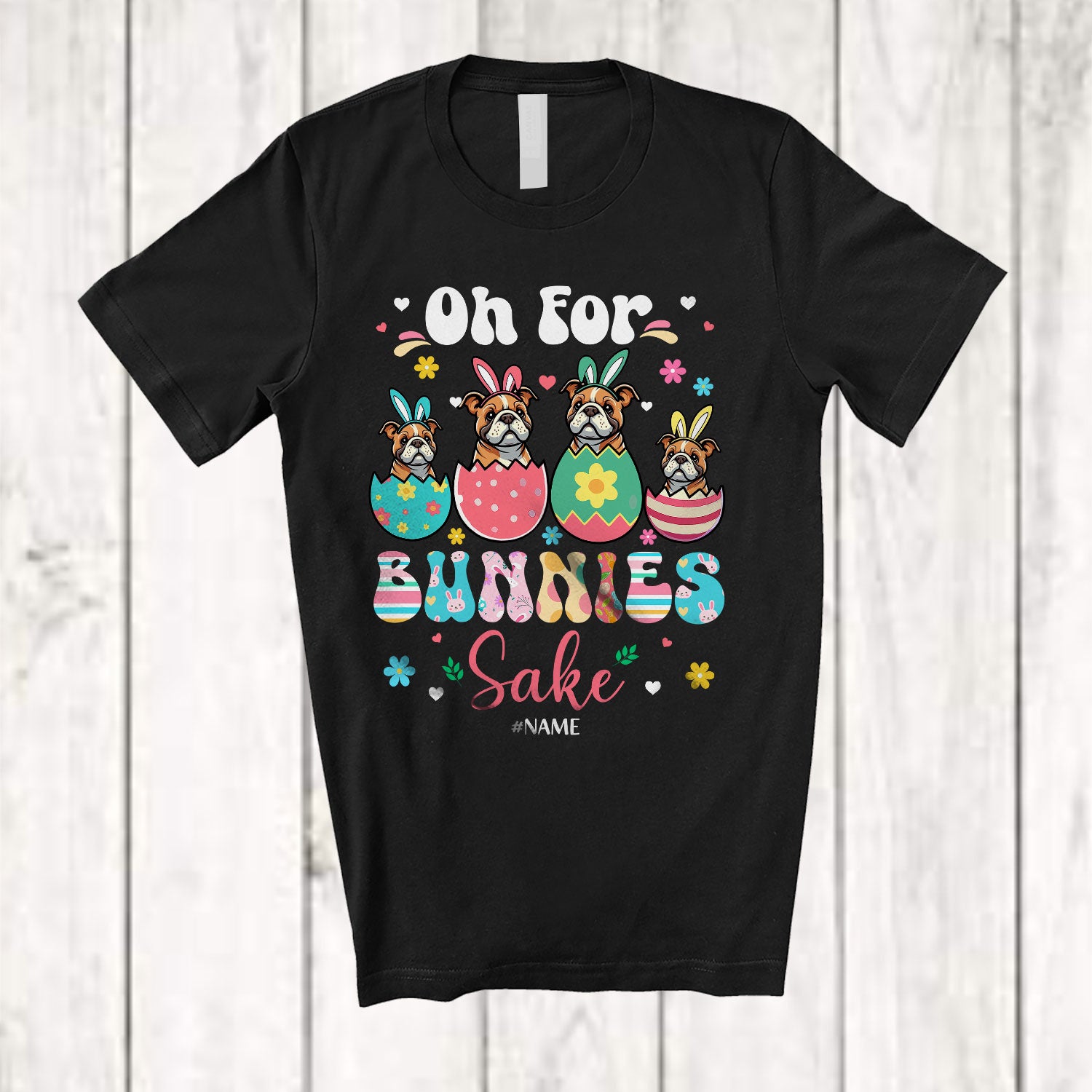 Personalized Custom Name Oh For Bunnies Sake; Lovely Easter Four Bunny Bulldog In Eggs T-Shirt