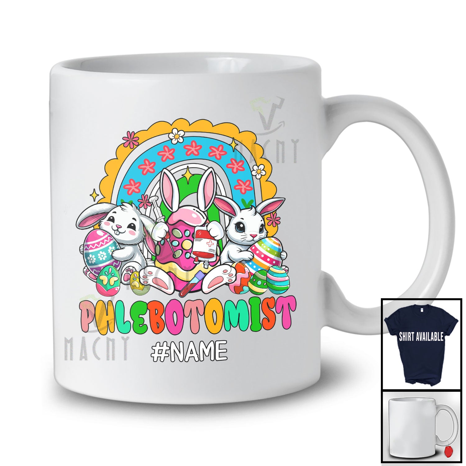 new MacnyStore - Personalized Custom Name Phlebotomist; Adorable Easter Bunnies Hunting Eggs; Rainbow Family T-Shirt – Macnystore