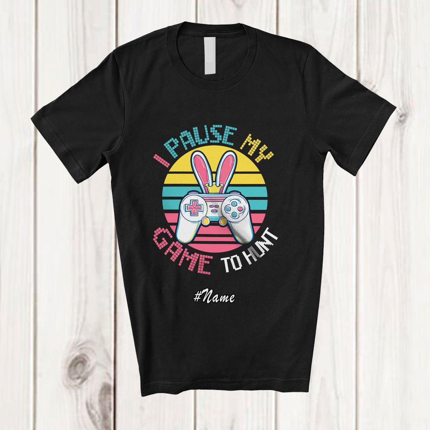The Personalized Custom Name Retro I Pause My Game To Hunt; Joyful Easter Video Game Bunny Gamer T-Shirt was built with people like you in mind. Something to keep you happy. Every. Single. Day.