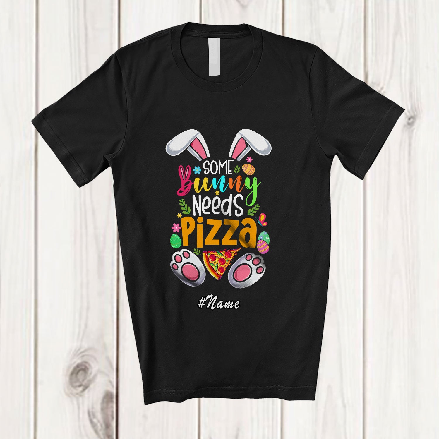 Personalized Custom Name Some Bunny Needs Pizza; Adorable Easter Bunny Flowers Food T-Shirt