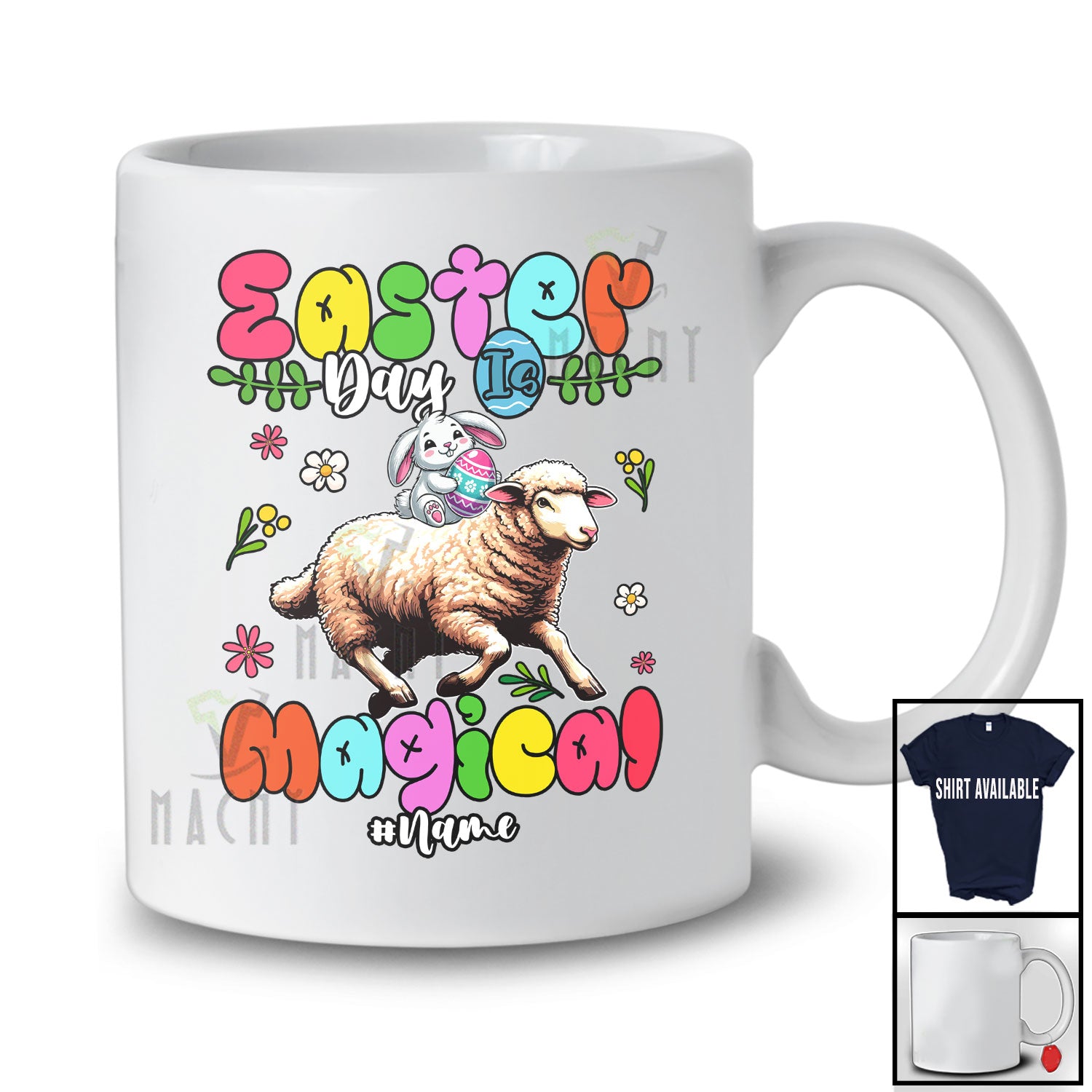 Personalized Easter Day Is Magical; Lovely Bunny Riding Sheep; Custom Name Family Egg Hunt T-Shirt