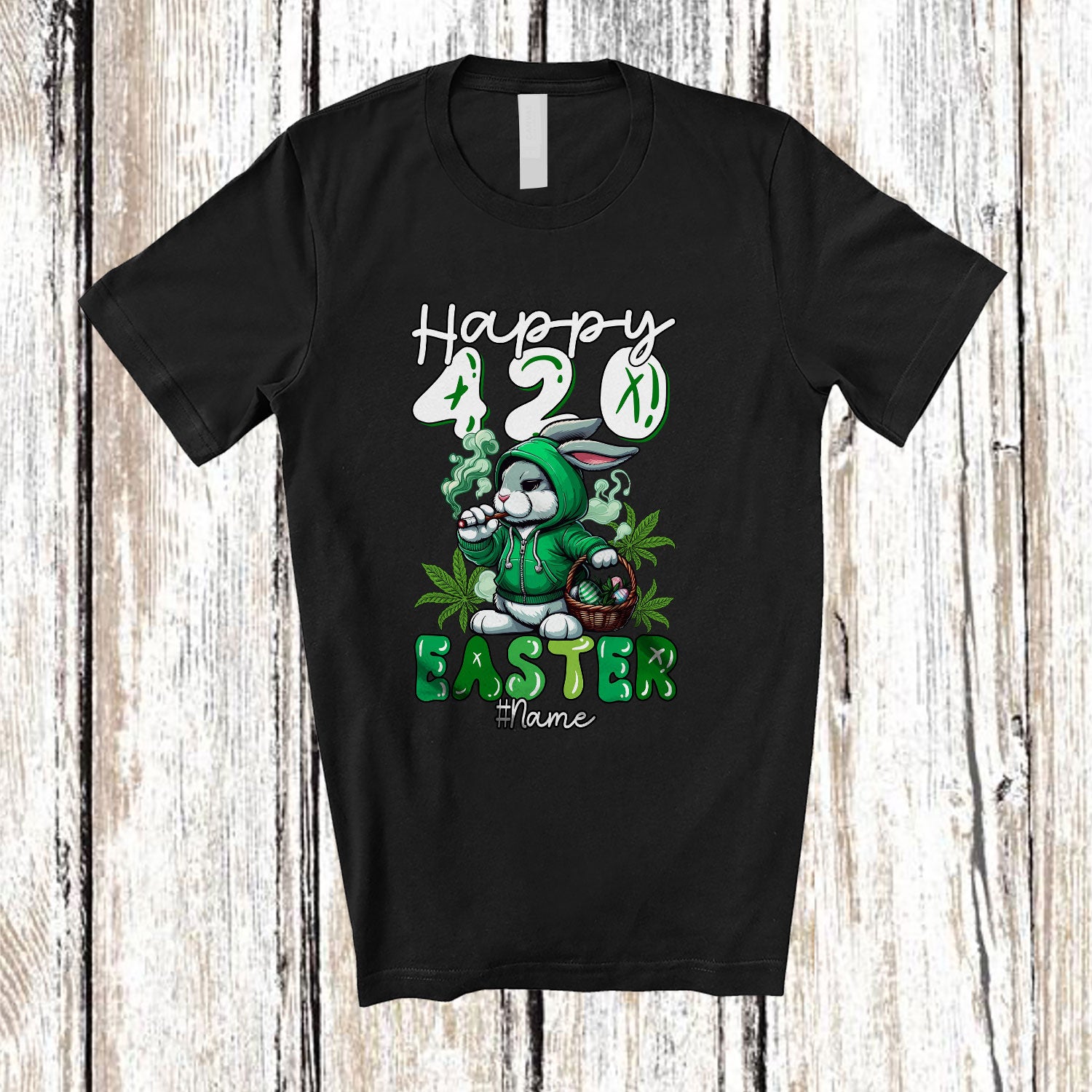 Personalized Happy 420 Easter; Joyful Easter Bunny Smoking Hunting Eggs; Custom Name Smoker T-Shirt