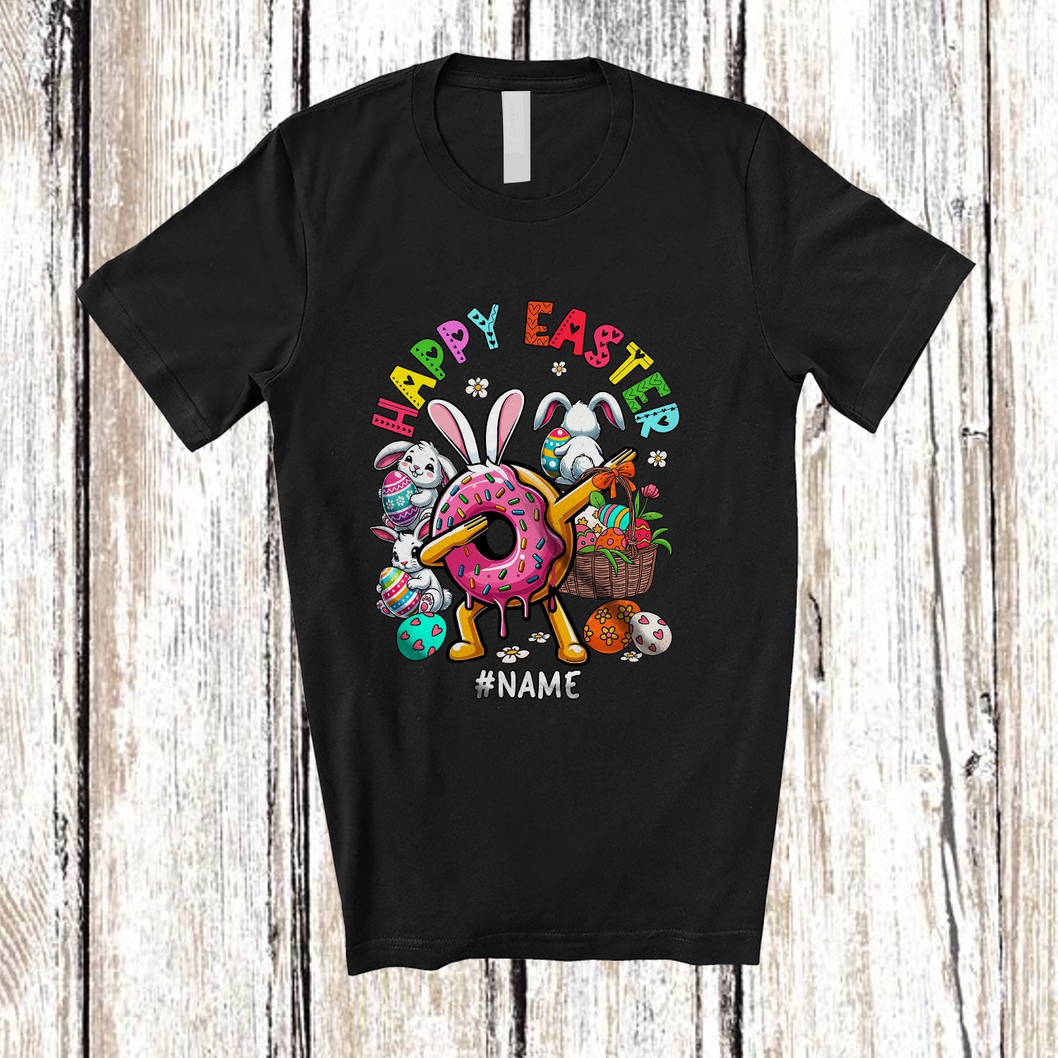 Personalized Happy Easter; Cheerful Custom Name Dabbing Bunny Donut Eggs Hunt Family T-Shirt