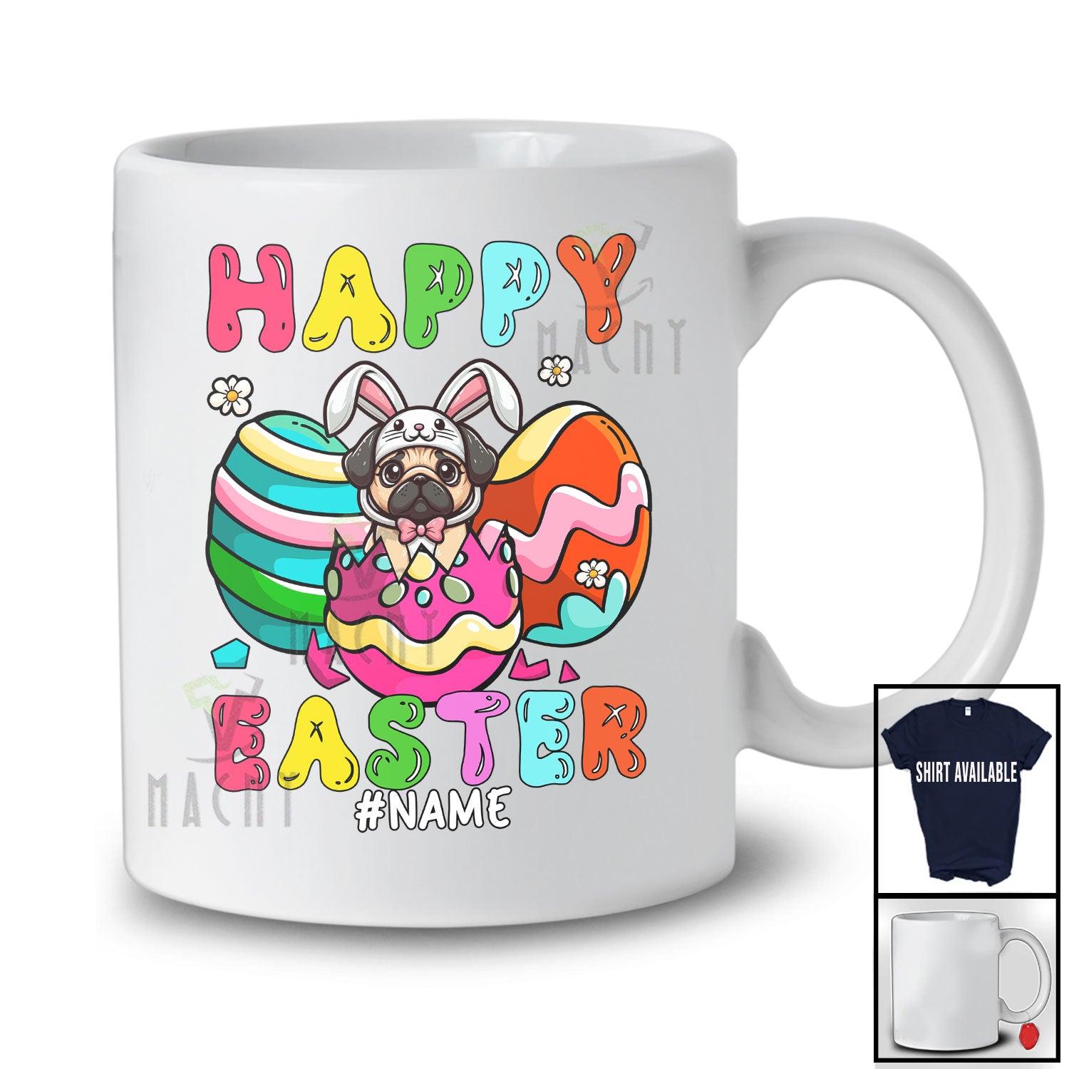 Personalized Happy Easter; Colorful Custom Name Pug Bunny In Easter Egg; Family T-Shirt