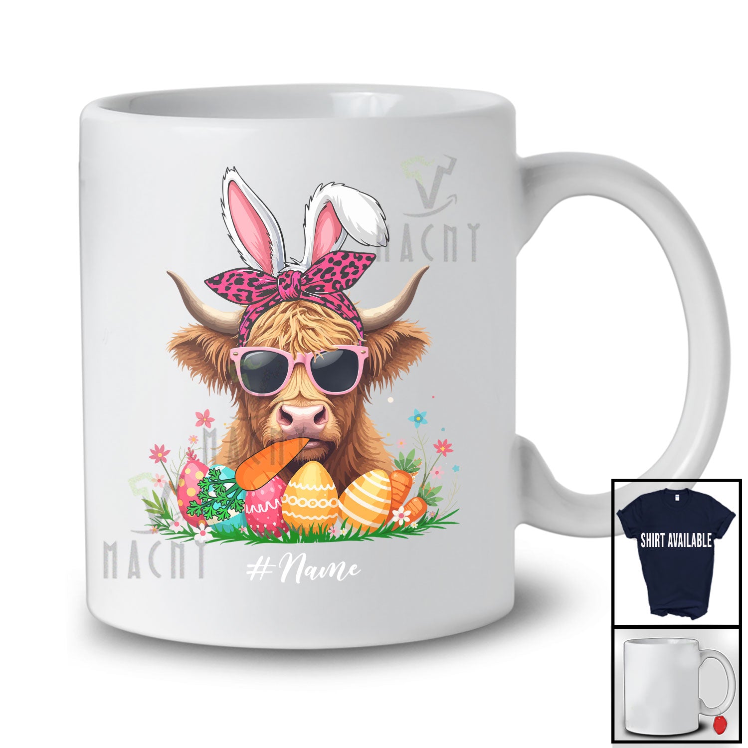 This Personalized Highland Cow Sunglasses Eating Carrot; Lovely Easter Custom Name Farmer; Farm Eggs Hunt T-Shirt is great idea gift for your family, friends in this birthday, christmas, mother's day, father's day, patrick's day or any holiday.
