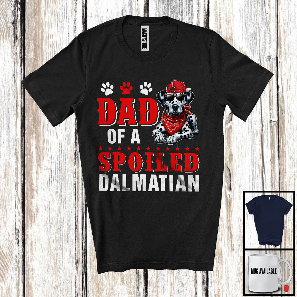 • Dad Of A Spoiled Dalmatian, Awesome Father's Day Puppy Sunglasses, Matching Family Group T-Shirt. This cotton t-shirt is a durable staple product with a classic fit. One of the most popular items, it has a relaxed style made for everyday and casual wear.